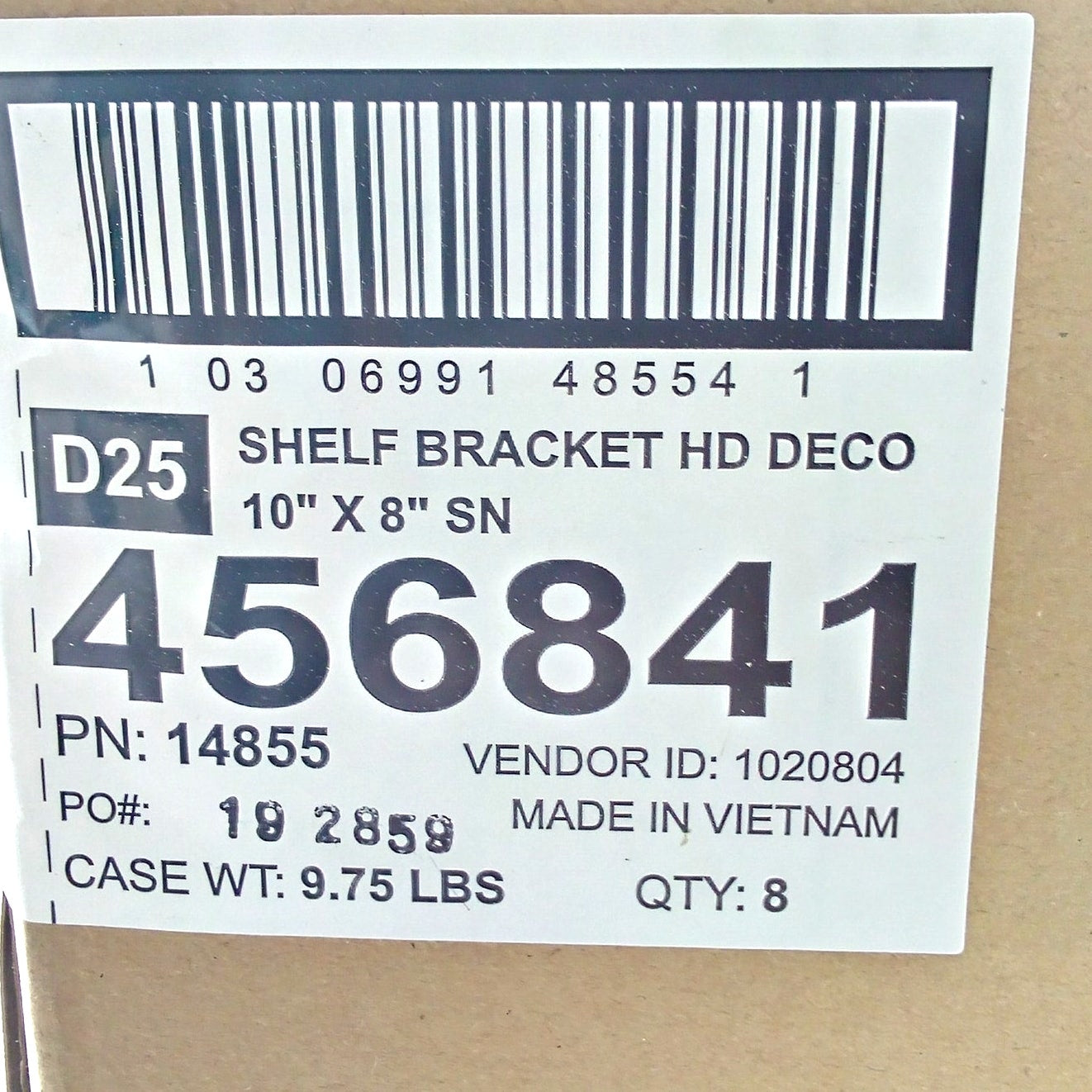 1 Case of 8 Everbilt Heavy‑Duty Shelf Bracket – Satin Nickel – 10" × 8"