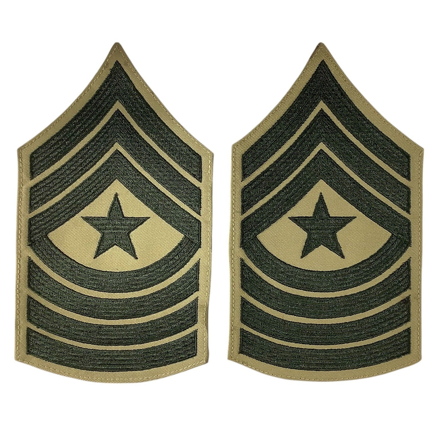 1 Set US Army Sergeant Major, Green/Khaki Insignia Patch, 6-1/8"H x 3-1/2"W