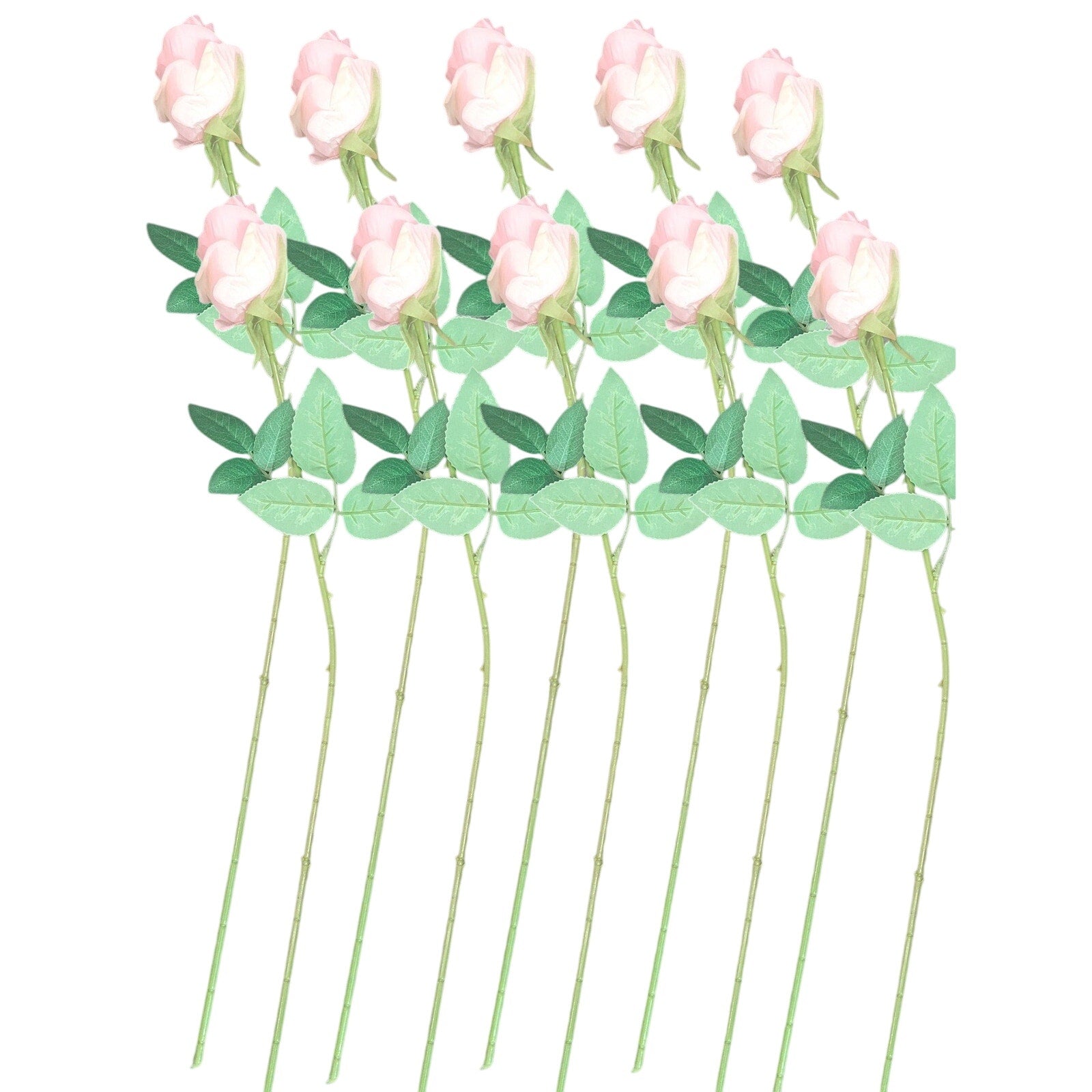 This set of 10 artificial pink roses by VicsGift features soft silk petals and lifelike foliage for a realistic floral display. Each stem measures approximately 24 inches in length, making them ideal for tall vases, DIY bouquets, or event centerpieces. The stems are flexible and can be trimmed or shaped to suit your arrangement. These roses offer lasting beauty without the upkeep of fresh flowers—perfect for weddings, home décor, or seasonal accents.