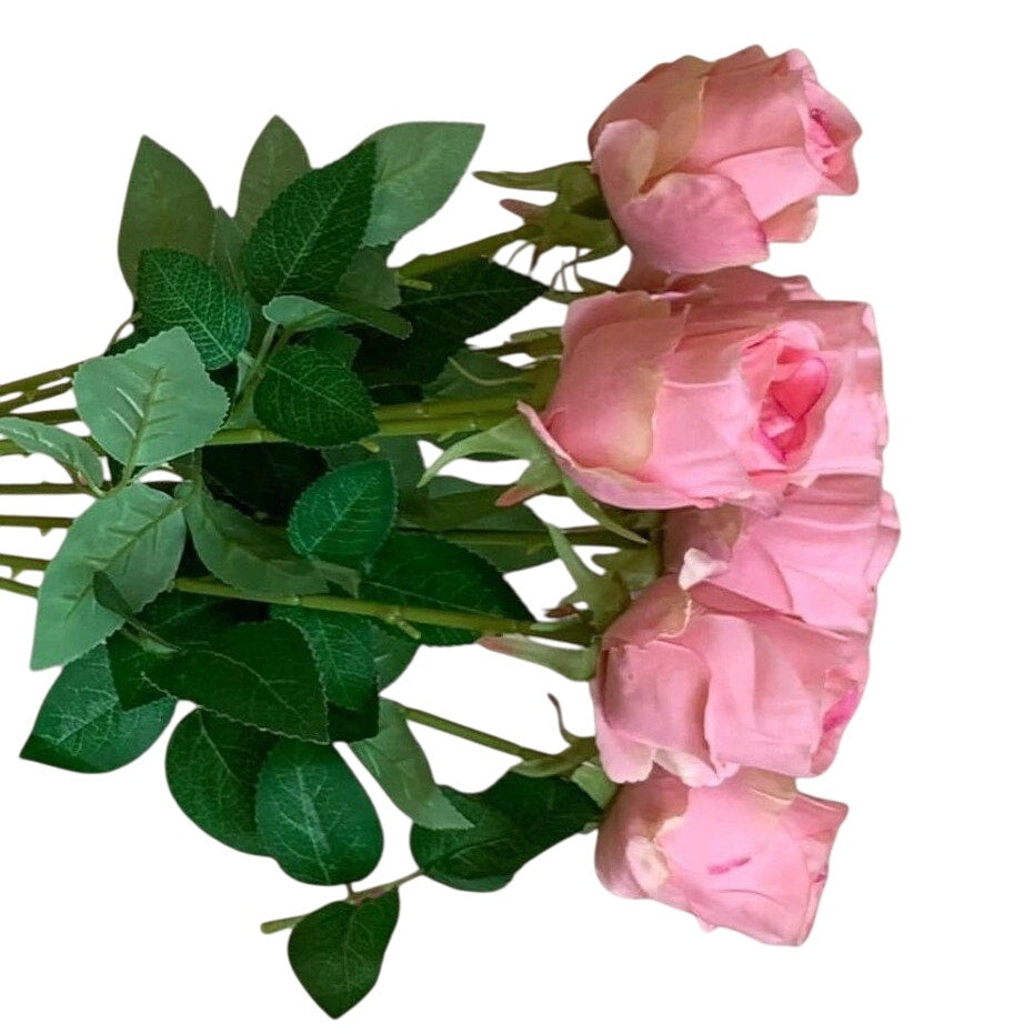10pcs Pink Roses Artificial Flowers Long Stem – Silk Petals, Realistic Look