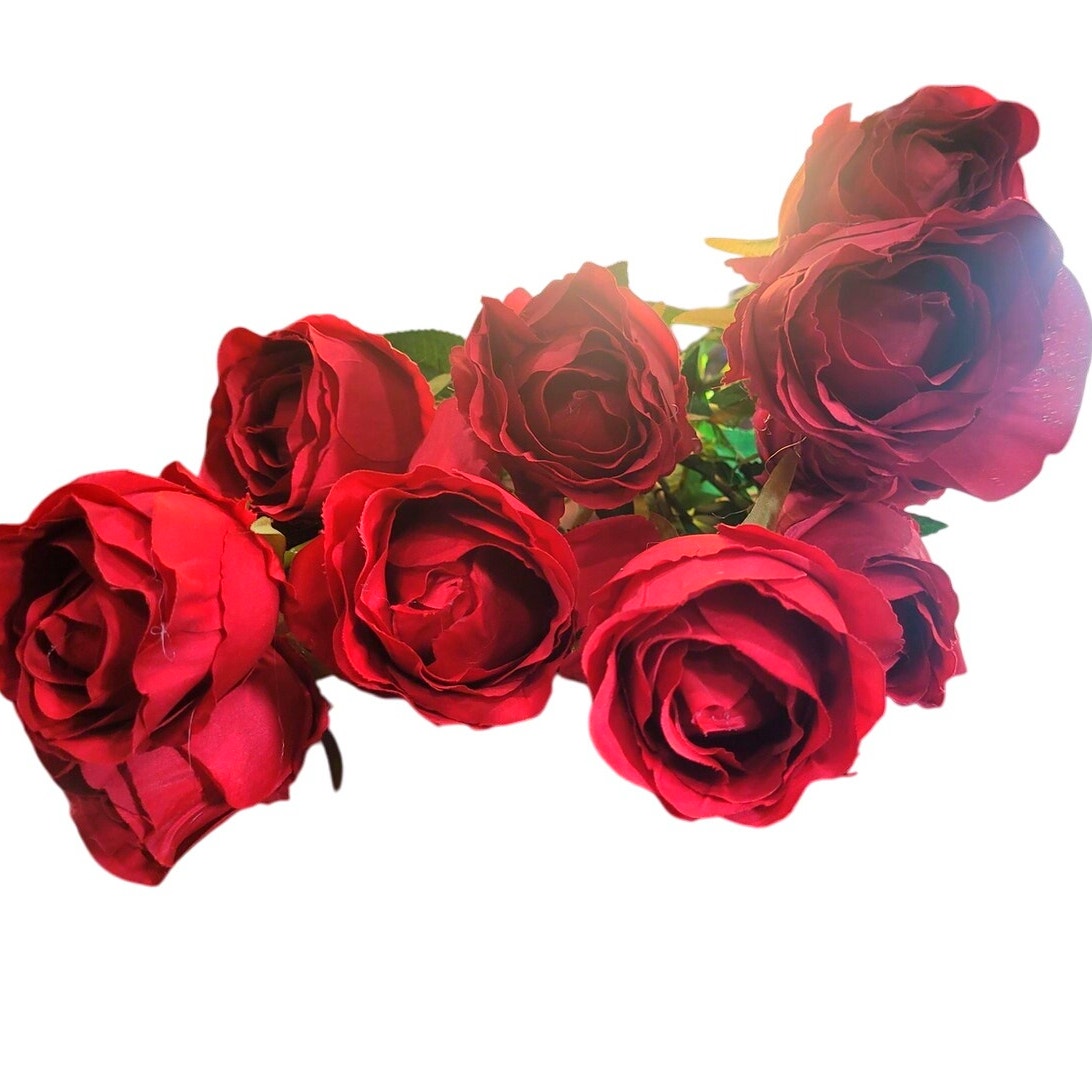 Elegant and everlasting, this set of 10 artificial red roses by VicsGift offers a lifelike alternative to fresh blooms. Each flower features soft silk petals and verdant foliage, mounted on long, flexible stems ideal for vases, bouquets, or event décor. Perfect for weddings, Valentine’s Day, or home arrangements, these roses maintain their vibrant color and shape without wilting. The stems can be trimmed or bent to suit any display style.