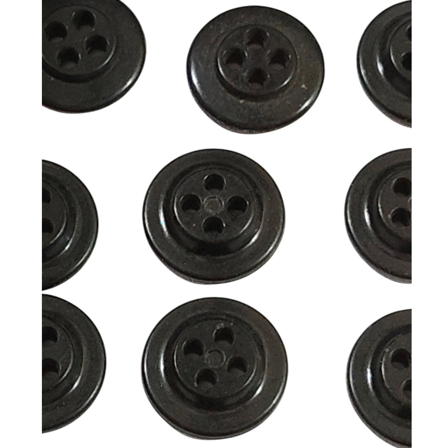The 12 black 4-hole Navy Anchor buttons, measuring 27 Ligne (5/8 inches in diameter), are designed as replacement buttons for peacoats.