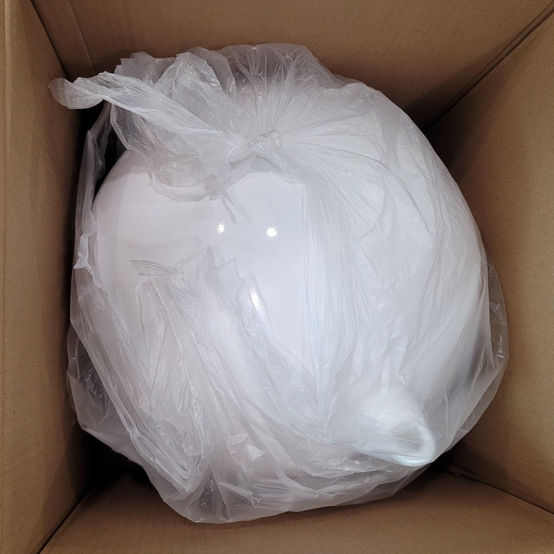 Oversized decorative Christmas ball ornament in glossy white finish. Perfect for making a bold holiday statement indoors or outdoors. Great for commercial displays, home décor, parties, and festive events.