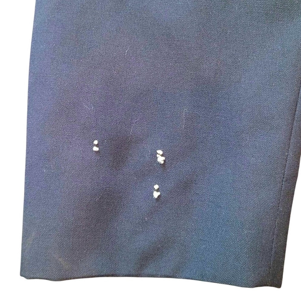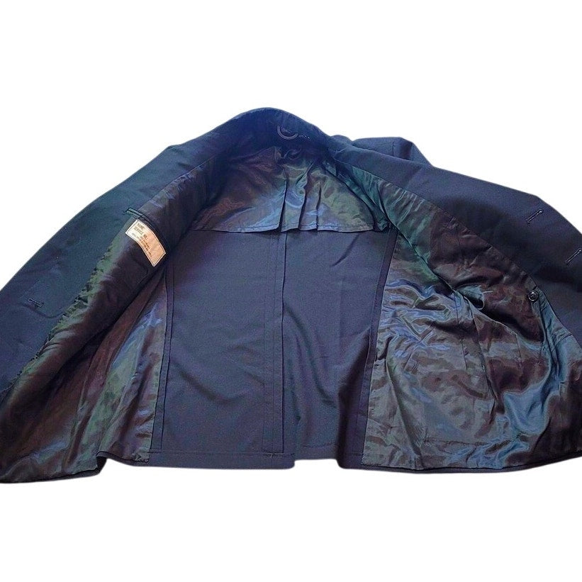 Genuine 1976 U.S. Navy summer service coat manufactured by Marcie Dale Inc. under contract DSA100-76-C-0501. Tagged with NSN 8405-00-444-2164. Size 46 Long. Constructed from a lightweight 55% polyester / 45% wool gabardine blend, ideal for warm-weather wear. No insignias have been applied. Pre-owned but never used—appears in excellent condition with no visible wear. Made in the United States. All photos are of the actual item.