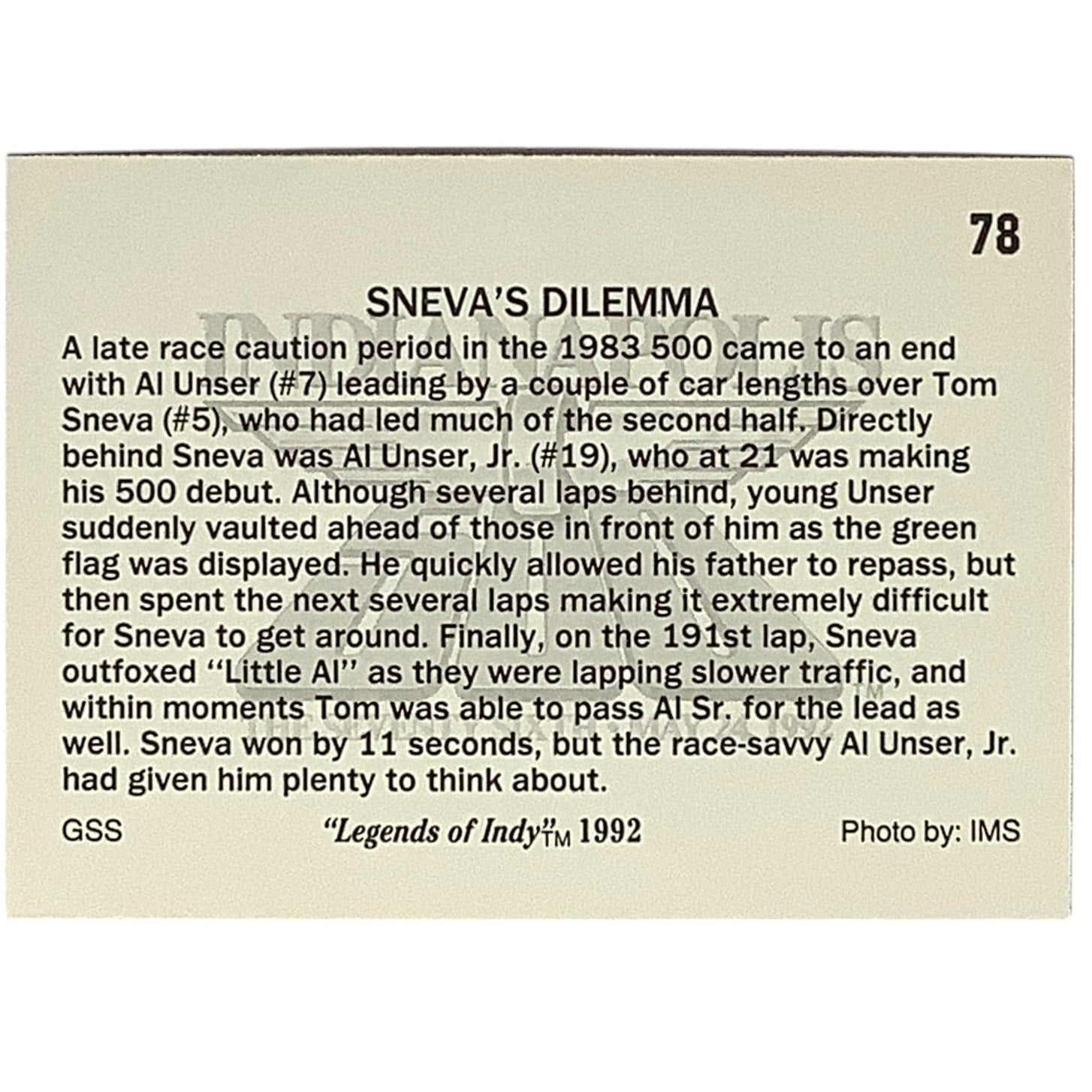1983 Tom Sneva's Dilemma at Indianapolis 500, 1992 Legends of Indy, Card 78 NM+
