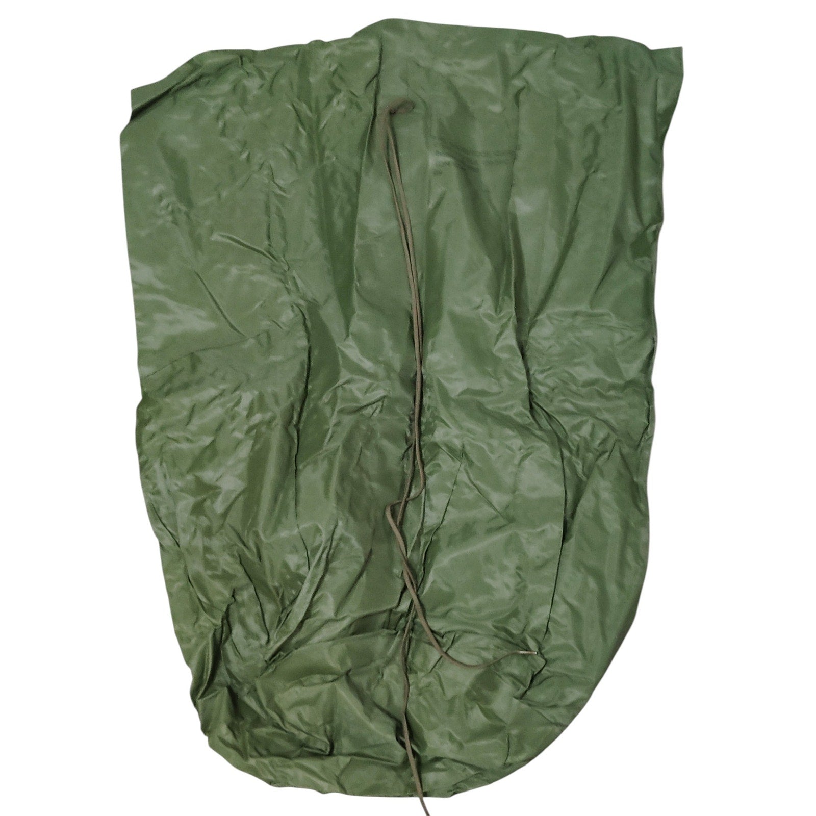 Authentic U.S. military waterproof clothing bag manufactured by Eon Corp under contract DLA100-84-C-412. Issued in 1984, this cylindrical nylon sack features a rubberized interior and tie-string top closure for moisture-resistant storage of clothing, gear, and personal effects. Designed to serve as a rucksack liner or standalone field bag, it offers reliable protection in wet environments. New-old-stock condition with signs of long-term storage. A practical and collectible item for surplus handlers and outdoor enthusiasts.