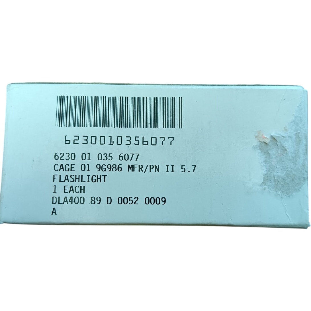 This rare 1989 U.S. Air Force crew light was manufactured by Loggy Bayou under contract DLA400-89-D-0052-0009 and designated O.C.S. Mini-Lantern P.N.# 5.7. Identified by NSN 6230-01-035-6077, it features a compact, rugged design intended for field illumination in tactical environments. The lantern is constructed from black impact-resistant polymer, with a sealed lens housing and manual switch, making it ideal for collectors of Cold War-era gear or vintage military lighting.