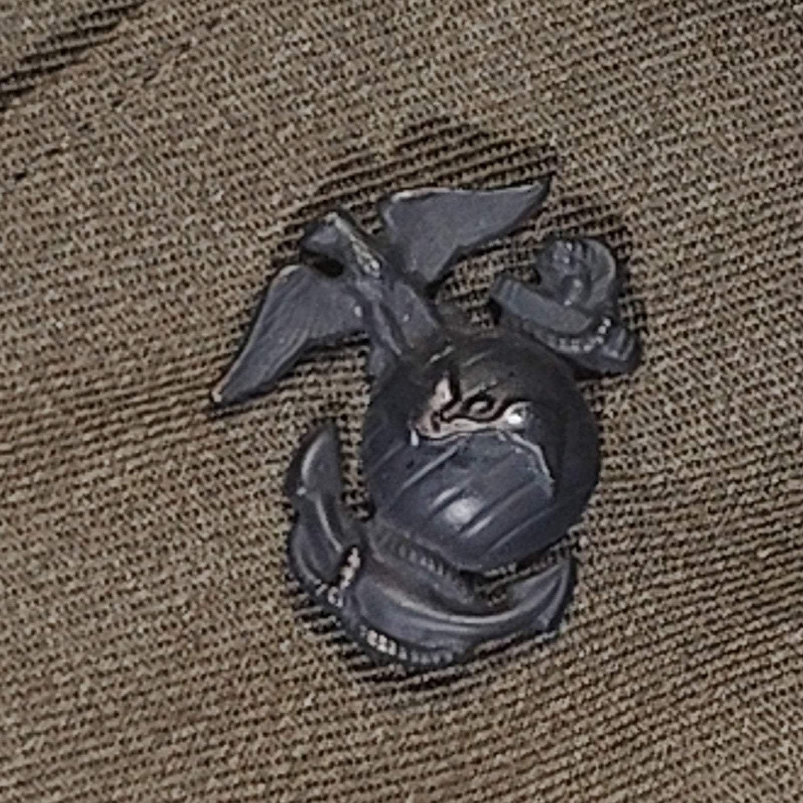 Authentic 1991 U.S. Marine Corps men’s garrison cap in green poly/wool blend, size 7-1/8, manufactured by Bernard Cap Company under contract DLA100-91-C-0407. Features the original USMC Eagle, Globe & Anchor (EGA) insignia affixed to the left side. Constructed to MIL-C-3261B specifications with reinforced stitching and internal lining. NSN 8405-01-279-7658 confirms official issue. Ideal for collectors, reenactors, or uniform restoration. Excellent used condition with minimal signs of wear.