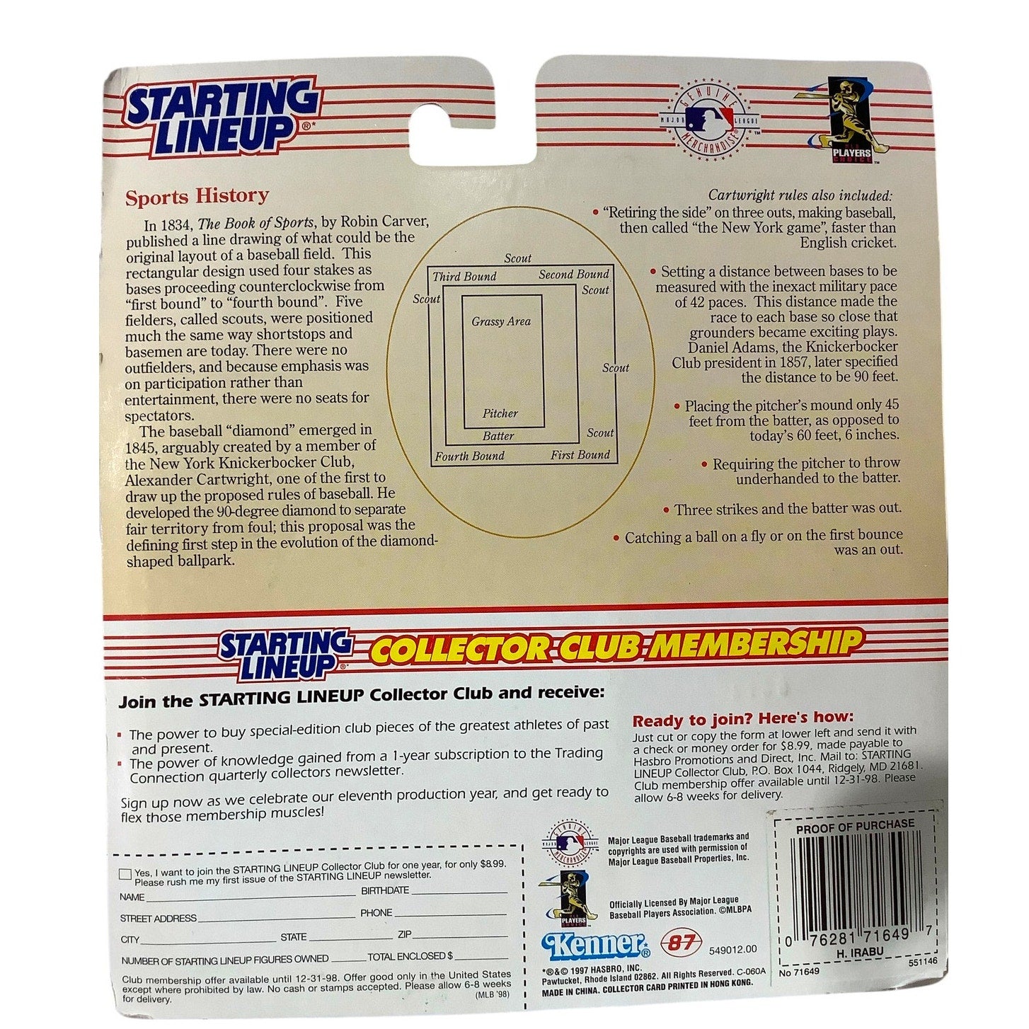 1997 Starting Lineup Hideki Irabu, New York Yankees 1998 Edition Extended Series