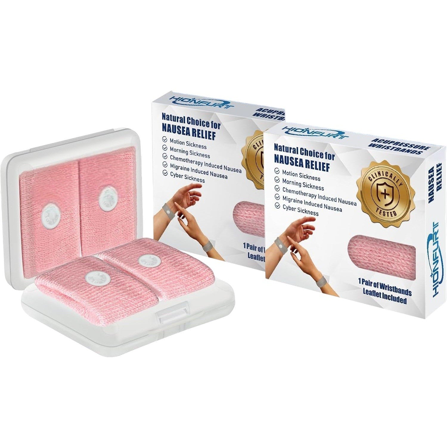 2-Pair Motion Sickness Bands Anti-Nausea Wristbands for Adults & Kids, Pink