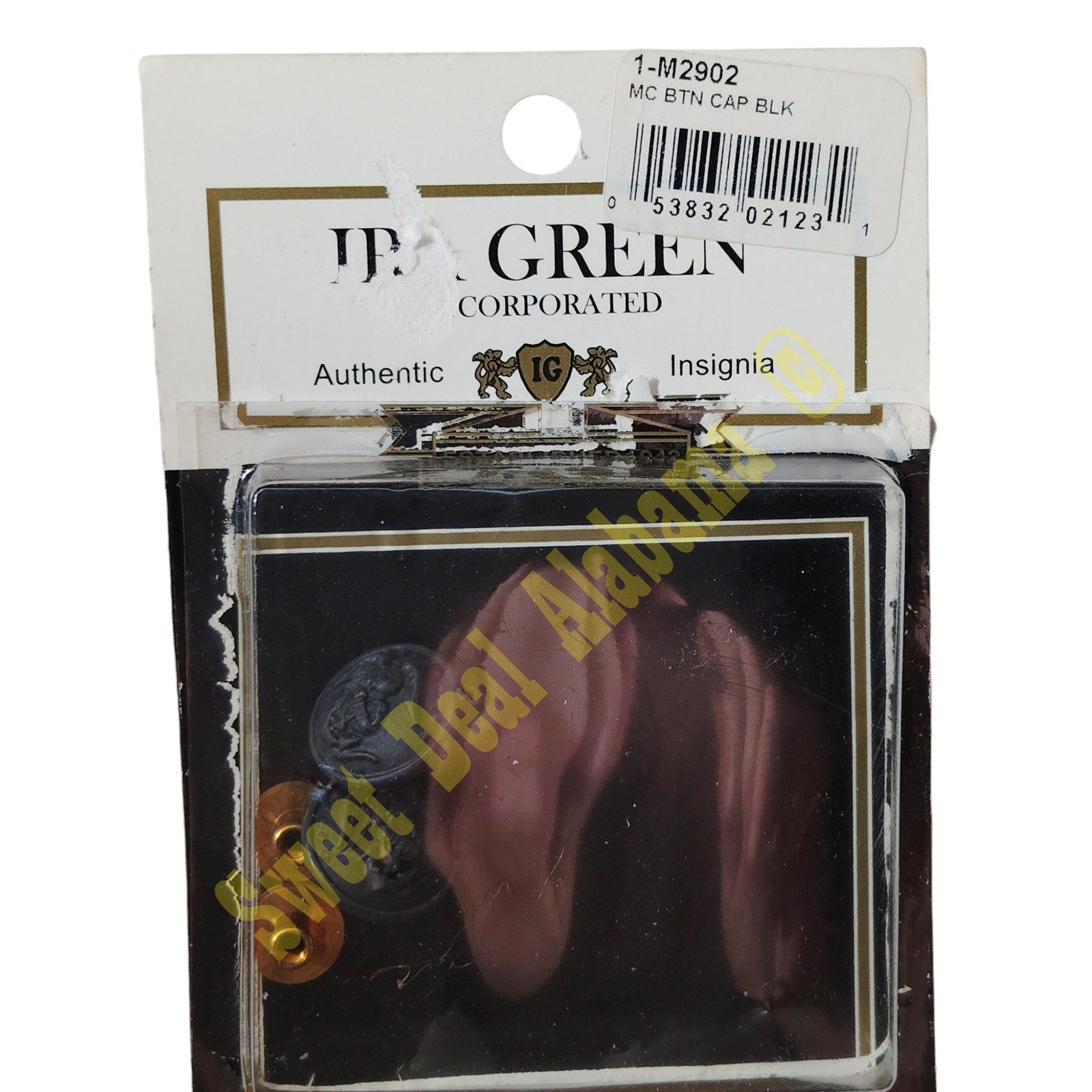The 2-PK USMC Cap Screw-On Buttons by Ira Green Inc. are designed for Marine Corps service caps. Each button measures 27 ligne (approximately 5/8 inch in diameter) and features a matte black finish, ensuring a subdued and professional appearance. These buttons are crafted with a screw-on backing for secure attachment, making them ideal for formal uniforms. The design incorporates the iconic Eagle, Globe, and Anchor emblem, symbolizing the Marine Corps' heritage and commitment. Sold as a pair, these buttons meet military specifications and are durable for long-term use.