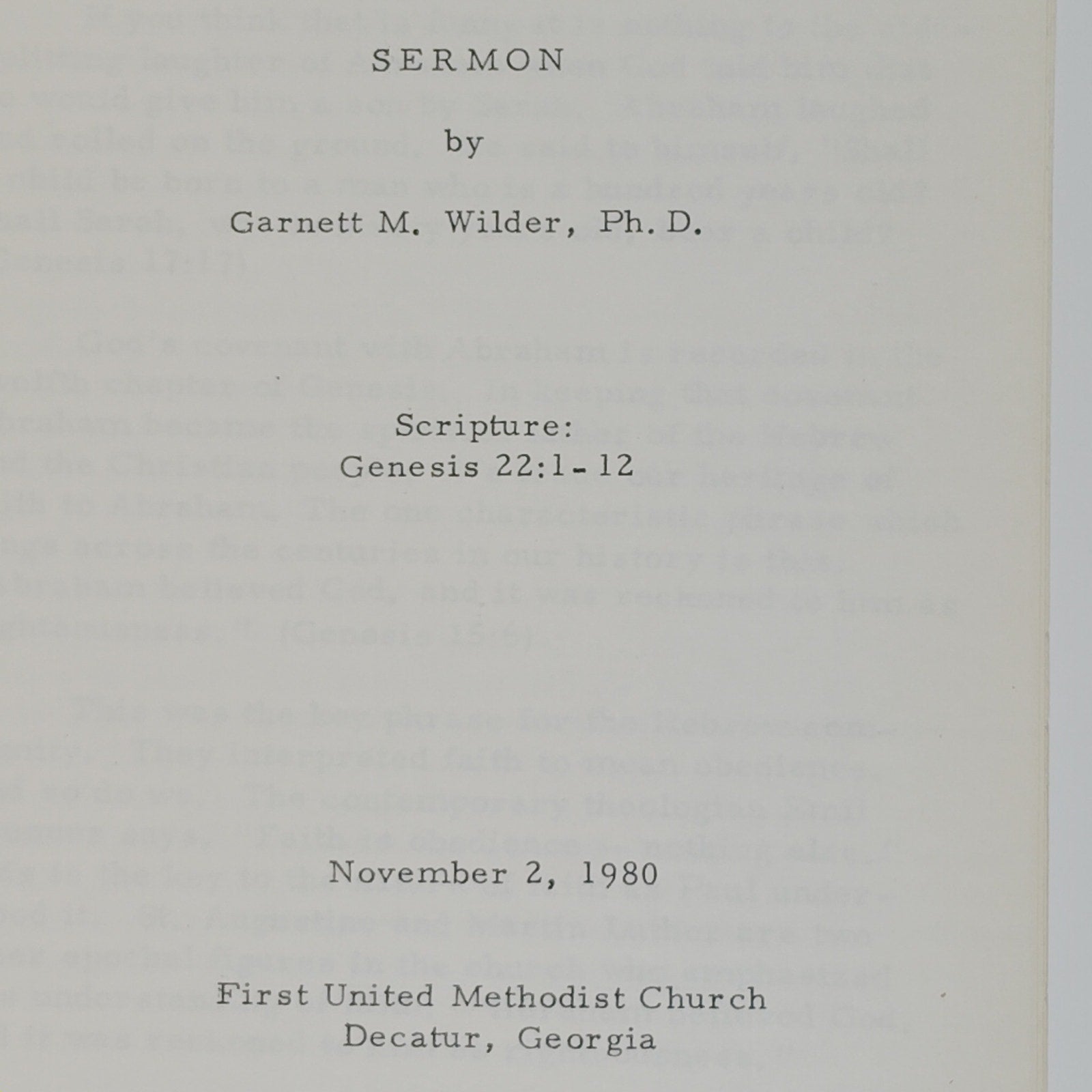 2 Sermon Programs – Garnett M. Wilder, Ph.D. – First United Methodist Church, Decatur GA – 1980–1981
