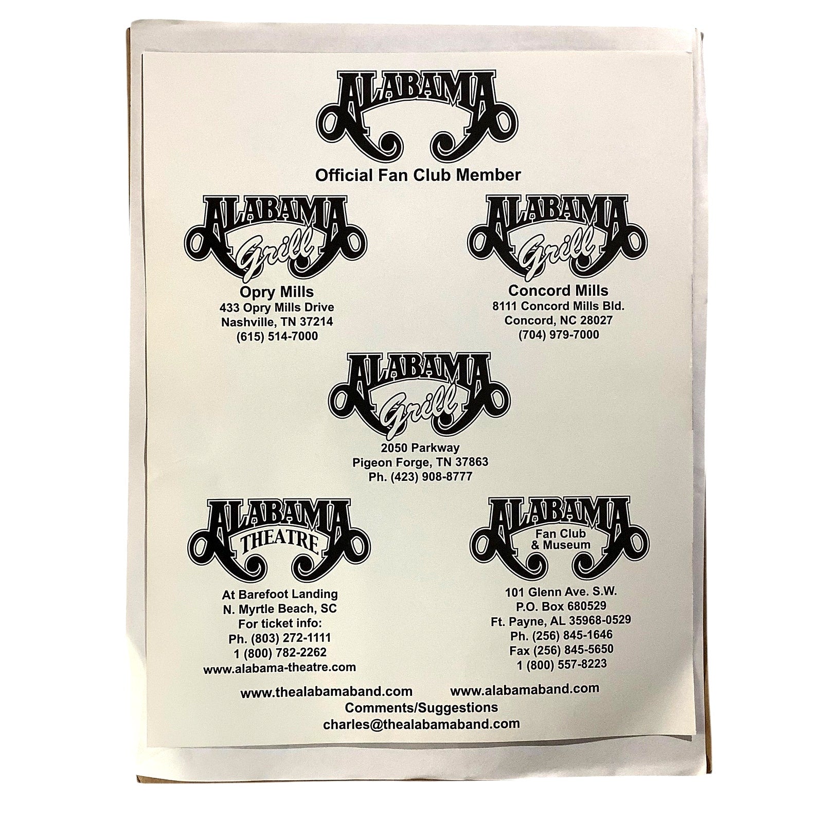 Typed Alabama Fan Club Letter received by the newly paid Membership Fees in 2001