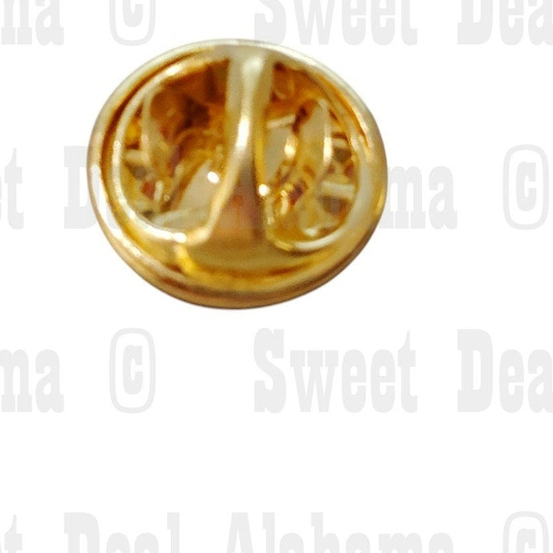 Includes butterfly clutchback(s) for secure fastening. The butterfly clutch is a small, metal clasp that grips the pin’s post, ensuring it stays in place on hats, jackets, or bags. This design allows for easy attachment and removal while keeping the pin firmly secured.