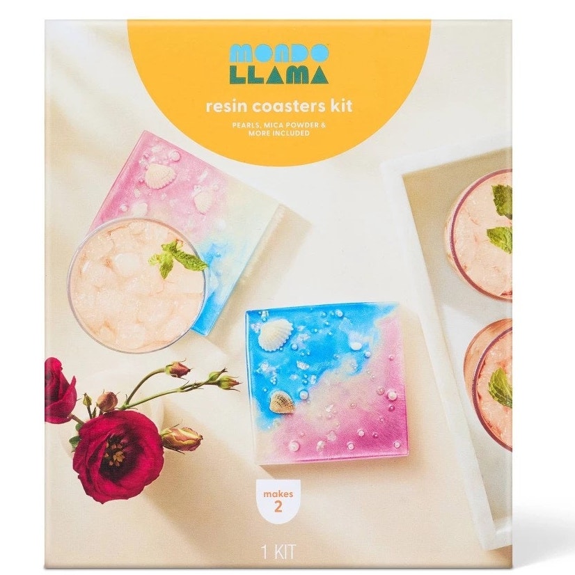 Create two custom coasters with this 2ct Shell Resin Coasters Craft Kit from Mondo Llama™. Designed for ages 6 and up, this DIY set includes everything needed to pour, decorate, and cure resin coasters with a beach-inspired theme. The kit features silicone molds, resin liquid, mica powder, mixing tools, and decorative elements like shells and pearls. A full instruction sheet guides users through the process, making it ideal for beginners or supervised kids’ craft sessions. Great for summer projects, gifting, or creative play.