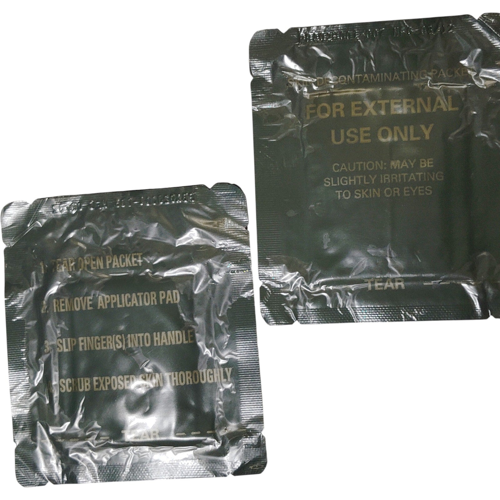 2pk Military Skin Decontamination Packets, Unopened, External Use, Vintage 08/02