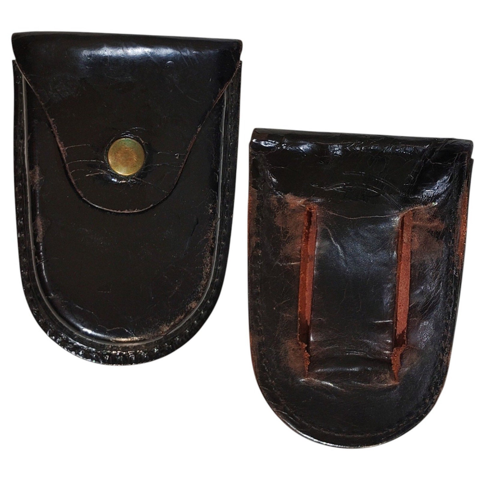 2x Vintage Leather Handcuff Holster Cases – Belt Attached, Non-Working Snaps, No Markings