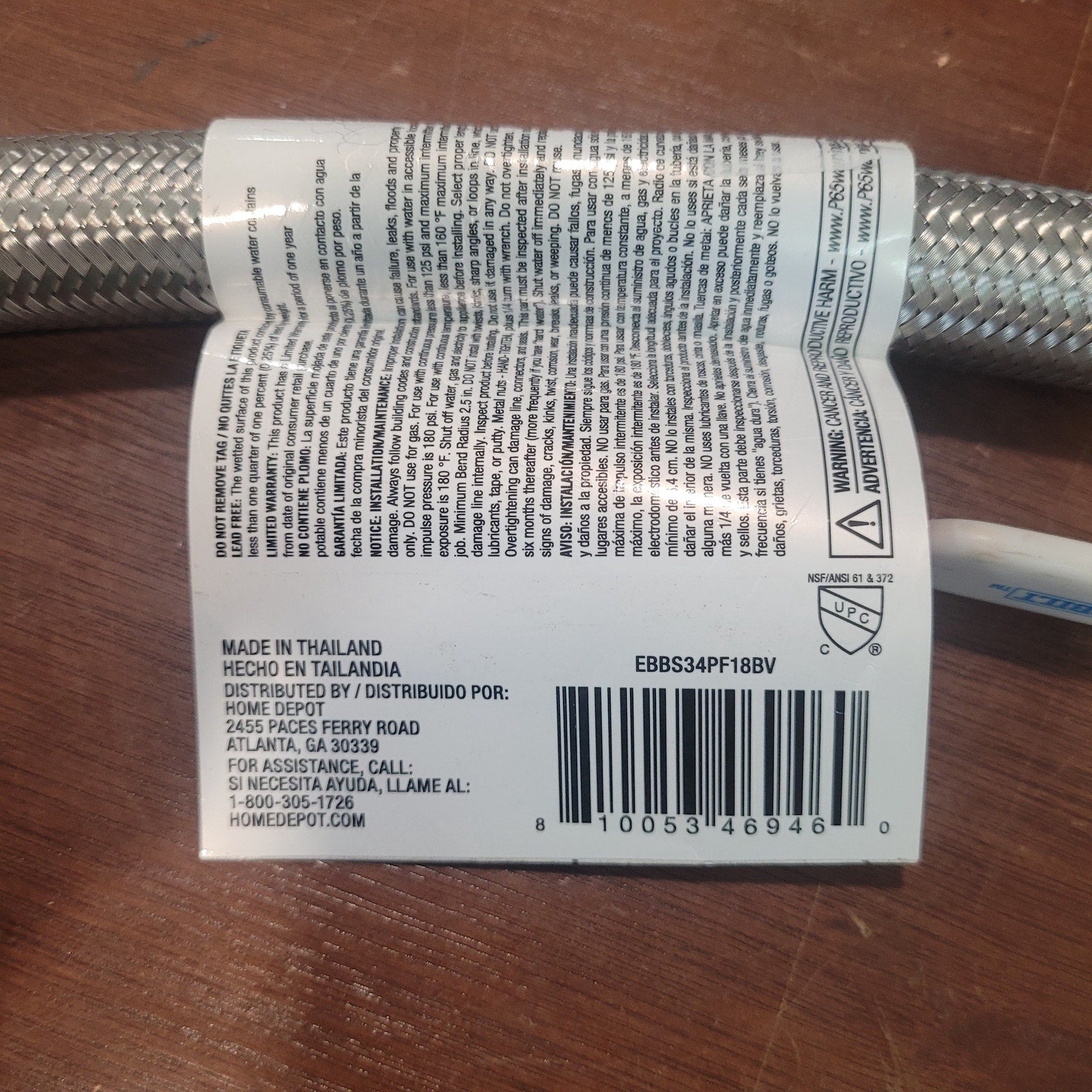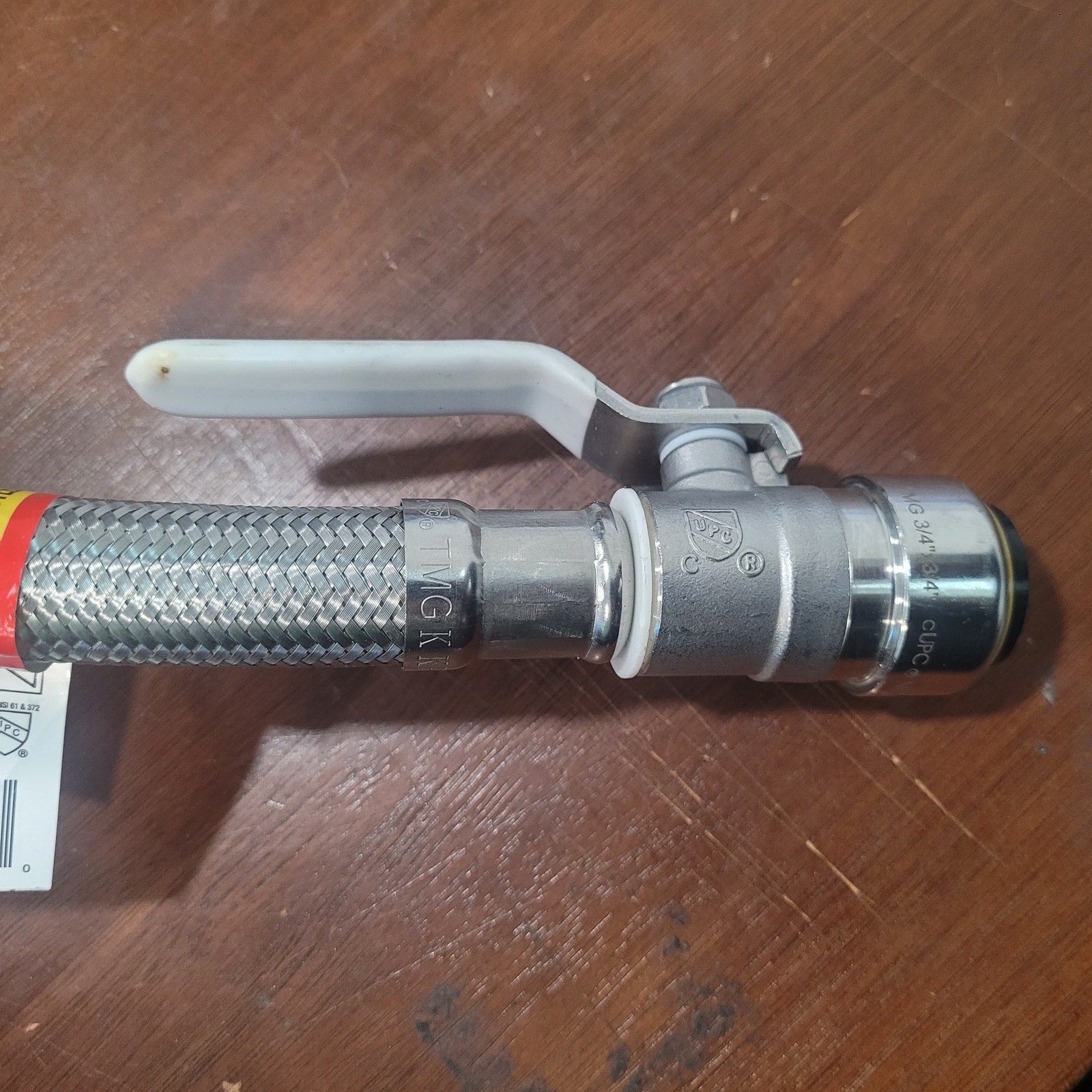 Braided stainless steel 18‑inch water heater connector featuring 3/4" push‑to‑connect (PTC) and 3/4" female iron pipe (FIP) ends. Constructed with lead‑free DZR brass and durable stainless steel braiding for long‑lasting reliability. Push‑to‑connect design allows fast, tool‑free installation to copper, PEX, CPVC, or PE‑RT. Includes integrated ball valve for convenient shutoff. Ideal for residential potable water and hydronic heating applications. Product trace confirmed from search results.