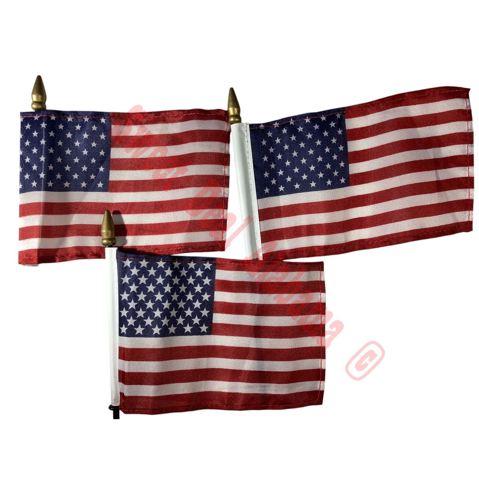 3-PK Flags, United States Flags- 6"W x 4"H Poly Flags on 11" Black Plastic Staff