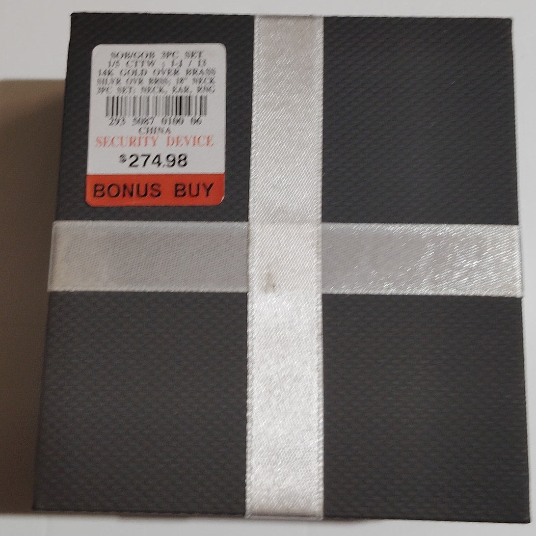 3PC Jewelry Set – 1/5 CTW – 14K Gold Over Brass – Necklace, Earrings, Ring Set