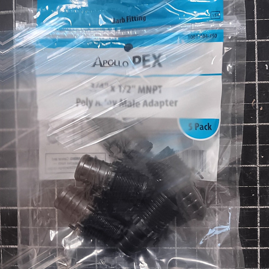 - Size: 3/4" Barb x 1/2" MPT (5-PK)