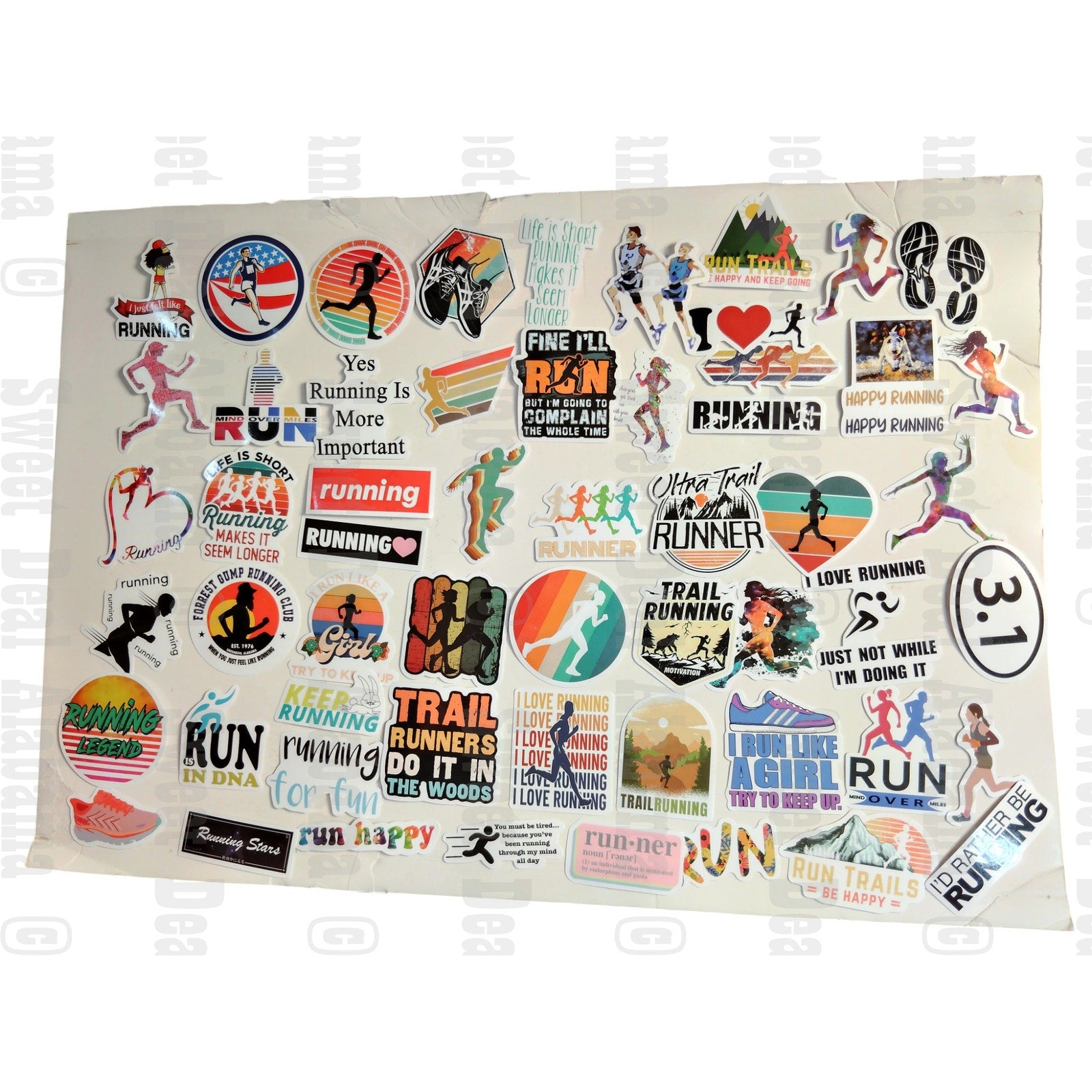 55 PCS Running Stickers - Waterproof Vinyl, Multicolor - Indoor & Outdoor Use