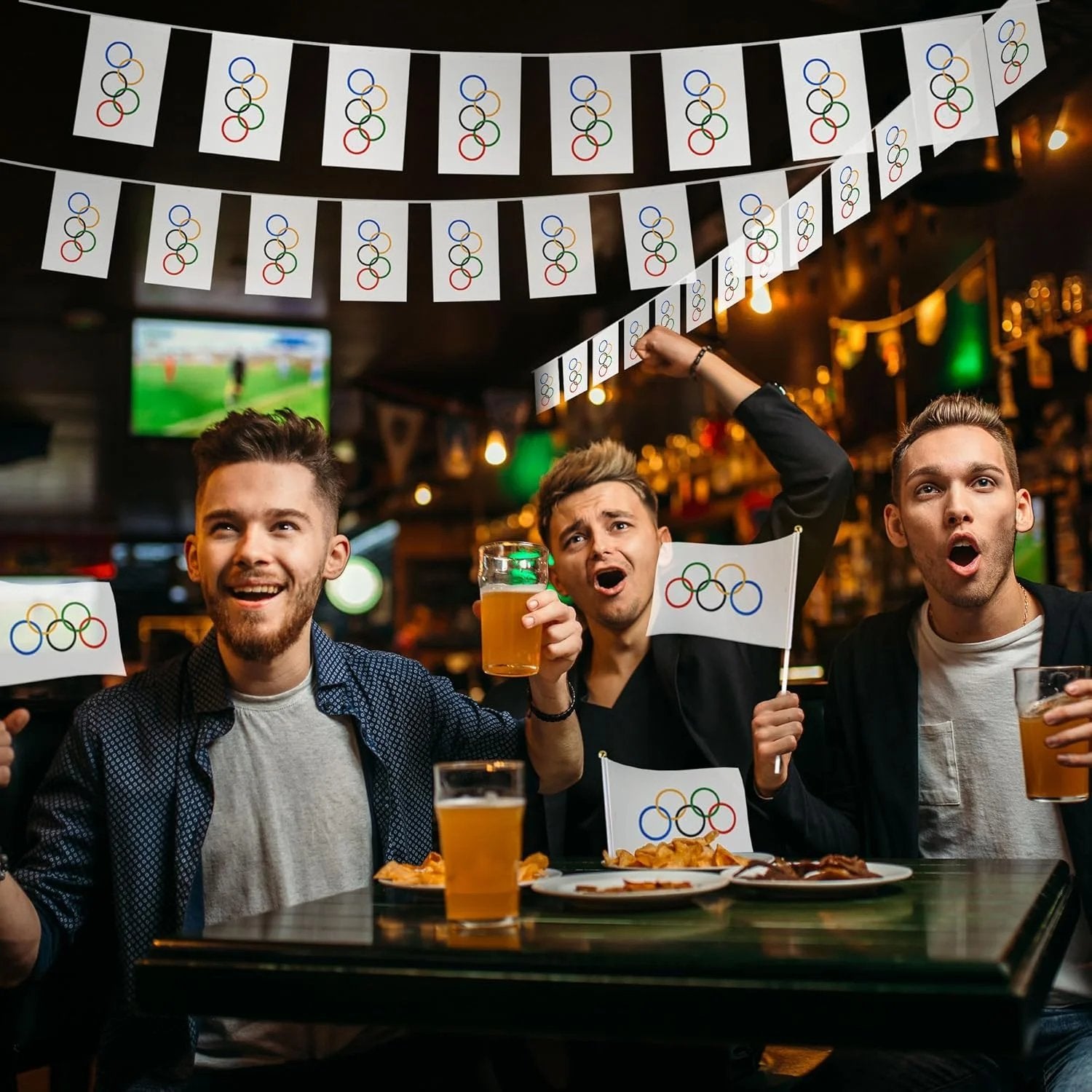 Celebrate in style with this 20-pack of 5x8 inch Olympics mini flags, perfect for adding glamour and charm to any party or event. Made from high-quality polyester fiber with fine edge stitching, each flag is mounted on a sturdy wooden stick for easy display. Featuring vibrant official colors that won’t fade, these flags are lightweight, portable, and versatile. Whether used at family gatherings, school events, community celebrations, or as photo backdrops, they bring endless festive energy indoors or outdoors.