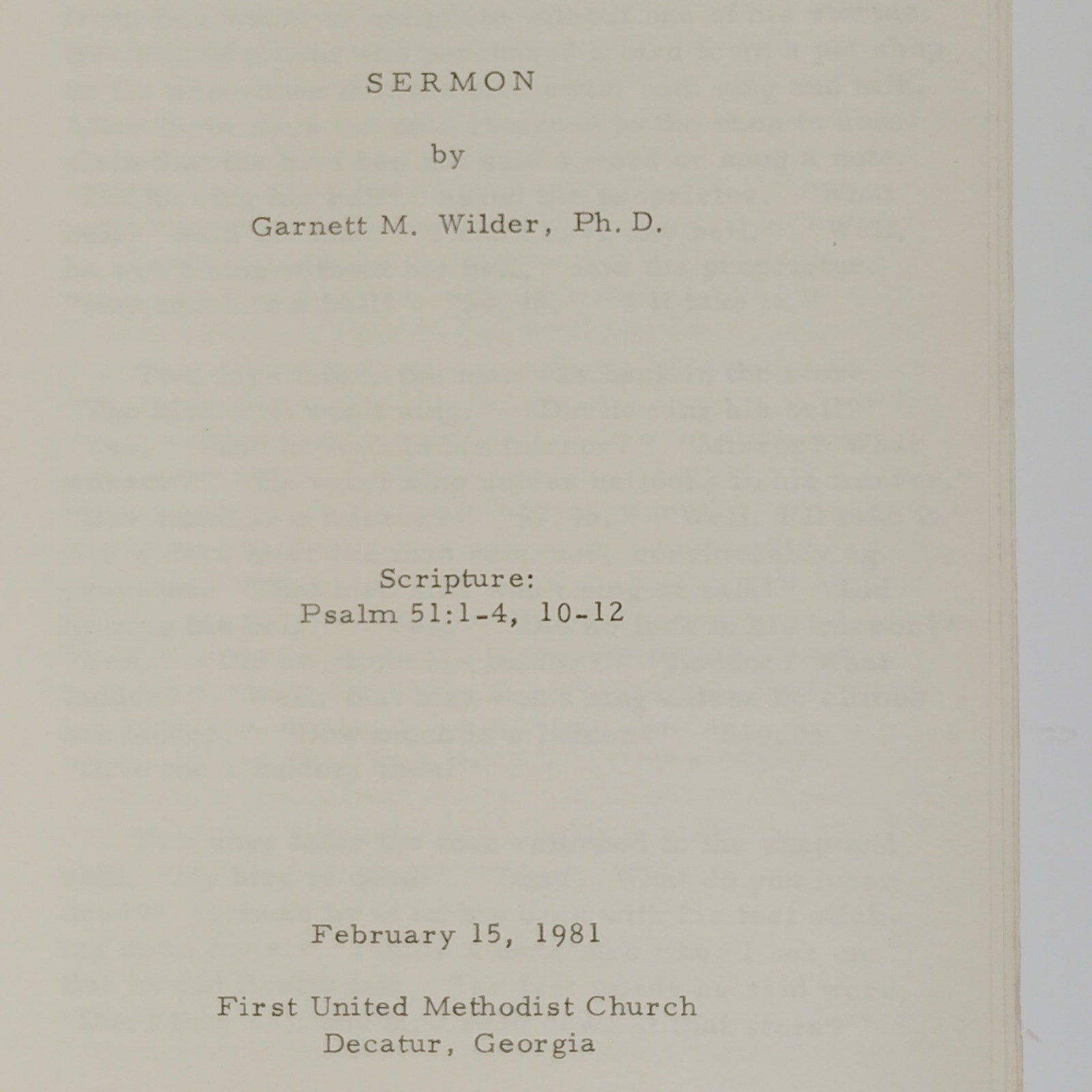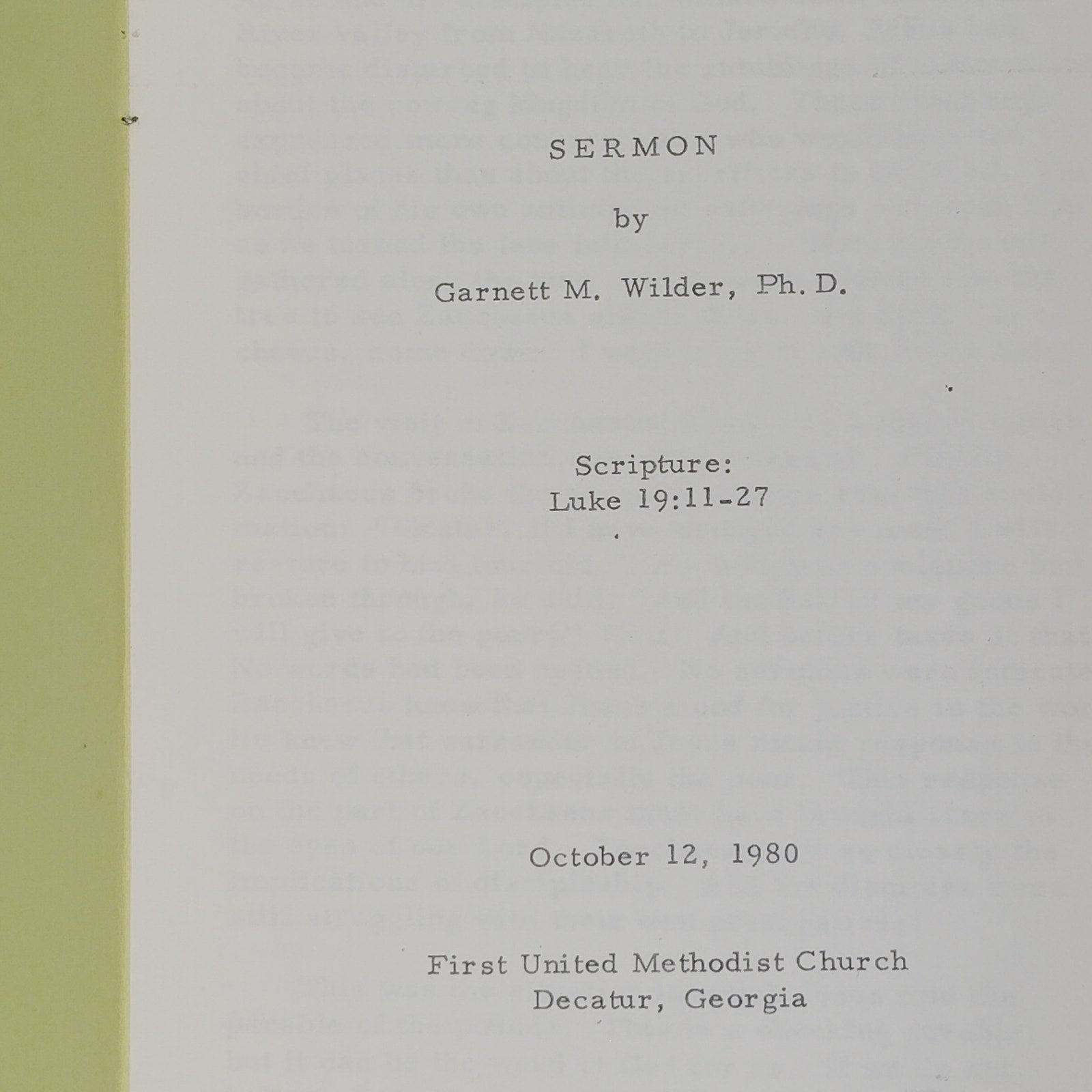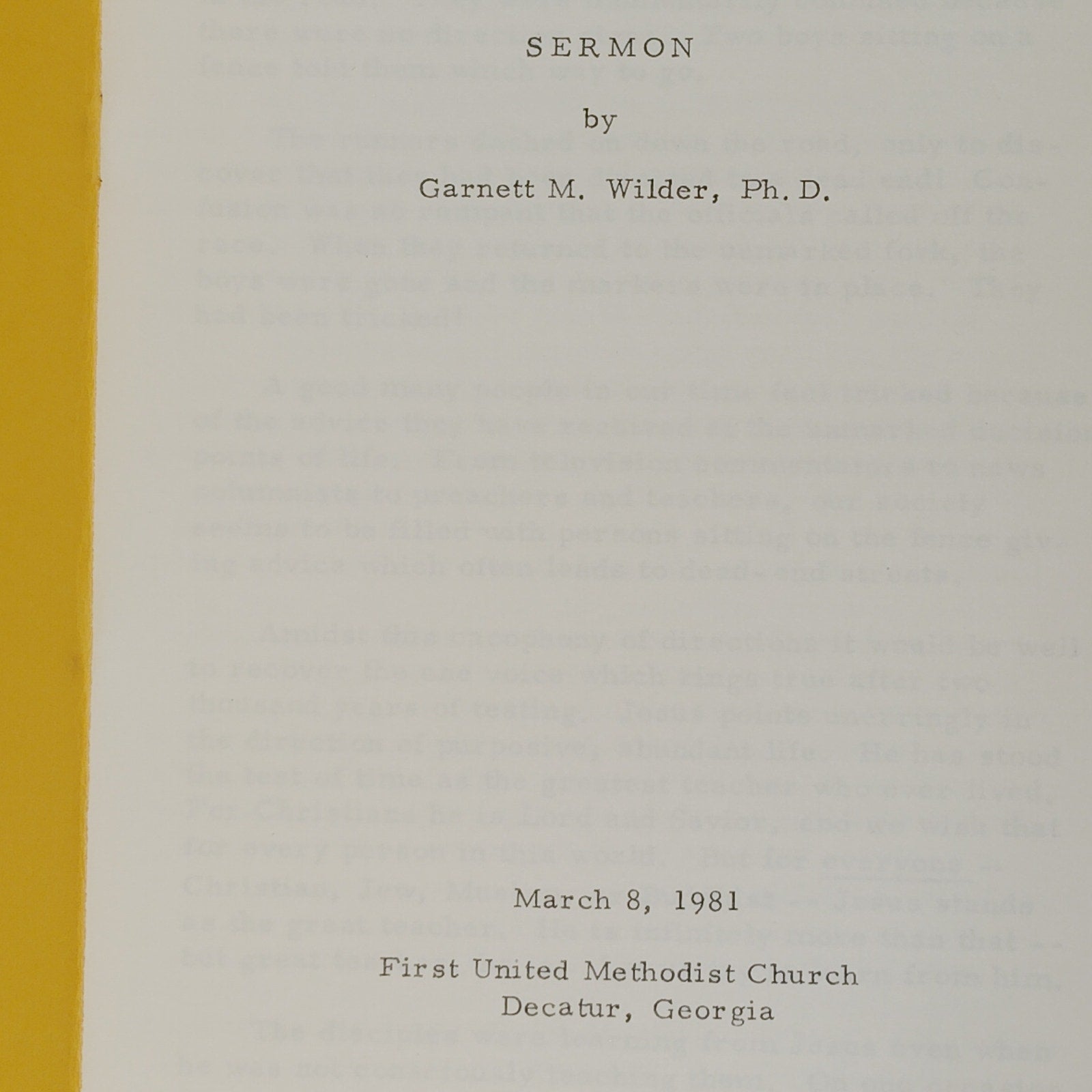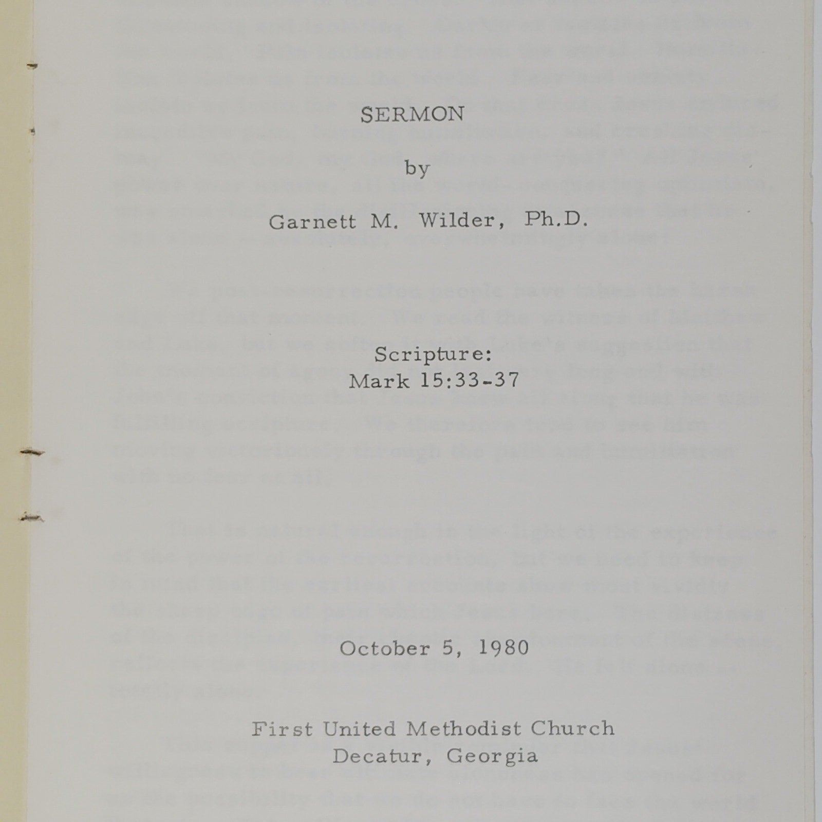 7 Sermon Programs – Garnett M. Wilder, Ph.D. – First United Methodist Church, Decatur GA – 1980–1981