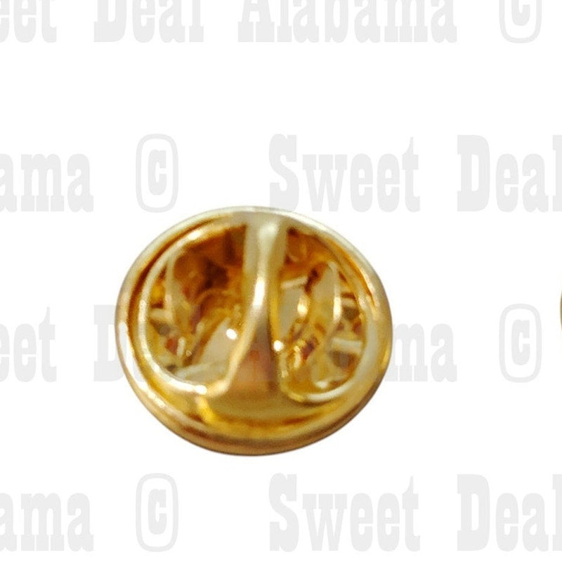 Includes butterfly clutchback(s) for secure fastening. The butterfly clutch is a small, metal clasp that grips the pin’s post, ensuring it stays in place on hats, jackets, or bags. This design allows for easy attachment and removal while keeping the pin firmly secured.