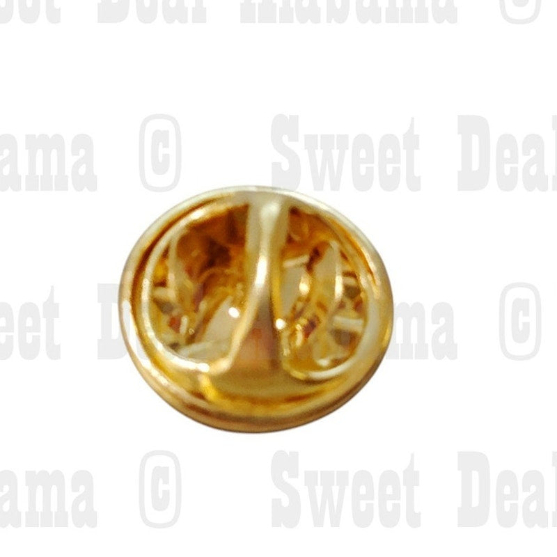 Includes butterfly clutchback(s) for secure fastening. The butterfly clutch is a small, metal clasp that grips the pin’s post, ensuring it stays in place on hats, jackets, or bags. This design allows for easy attachment and removal while keeping the pin firmly secured