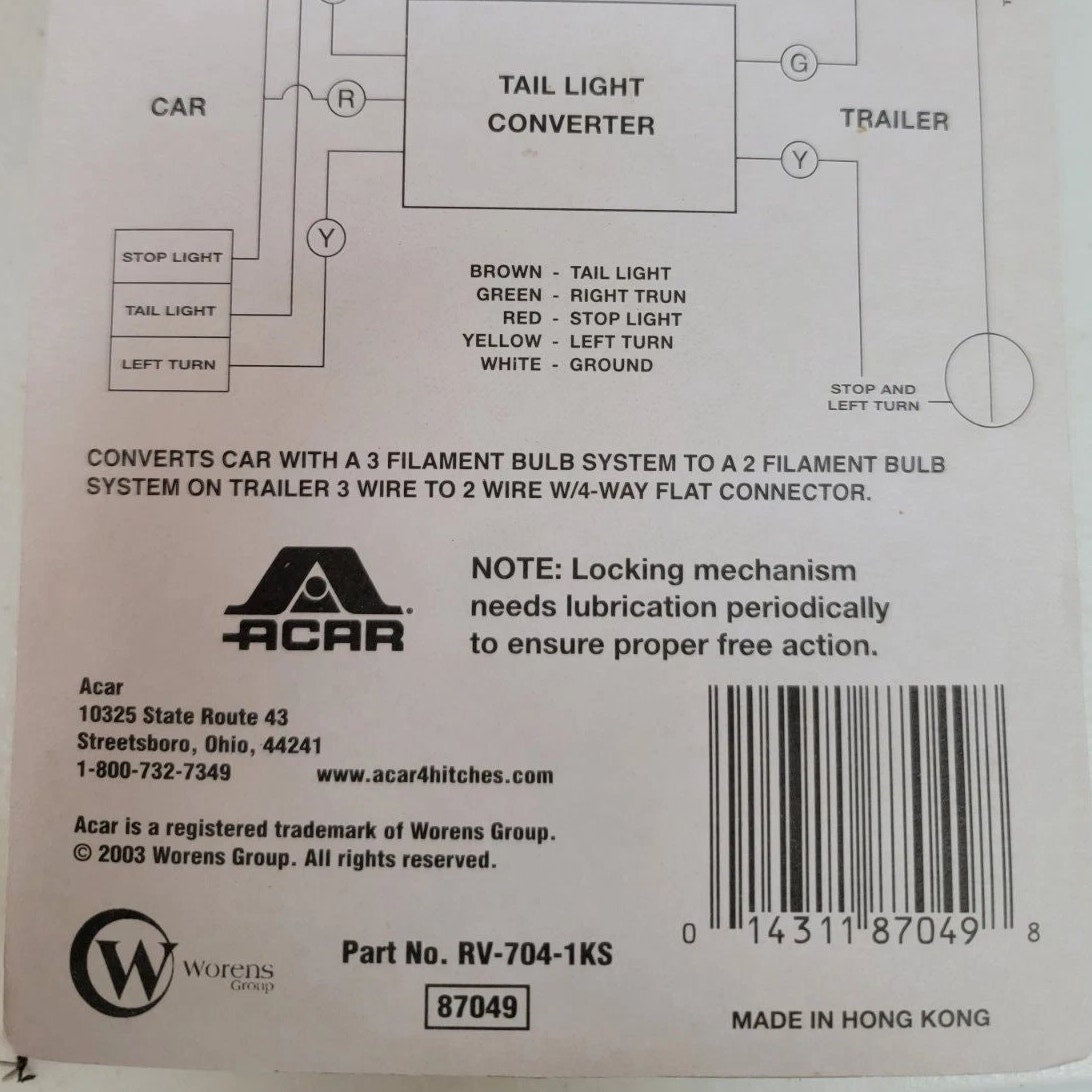 ACAR HDSS 3-to-2 Tail Light Converter, 6A, RV-704-1KS, Trailer/RV Light Adapter