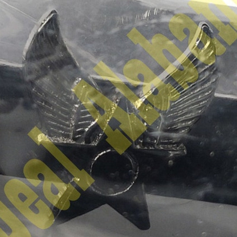 The Air Force Hap Arnold Tie Clasp or Clip by No-Shine Insignia is a regulation accessory featuring the iconic "Hap Arnold" emblem—a winged star design symbolizing the Air Force's heritage. Measuring 2 inches in length, with emblems sized at 1/2 inch by 1/2 inch, this tie clasp is crafted for durability and a polished appearance. It is ideal for formal wear, reflecting professionalism and pride in Air Force traditions.
