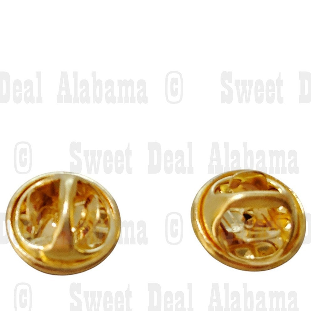 Includes butterfly clutchback(s) for secure fastening. The butterfly clutch is a small, metal clasp that grips the pin’s post, ensuring it stays in place on hats, jackets, or bags. This design allows for easy attachment and removal while keeping the pin firmly secured.