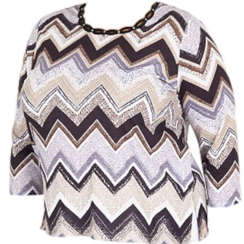 This women's 3/4 sleeve t-shirt from Alfred Dunner's Classics collection is a vibrant interpretation of an everyday style classic. Made from soft stretch material, this pullover patterned tee is perfect to pair with your favorite pants or jeans. Closure