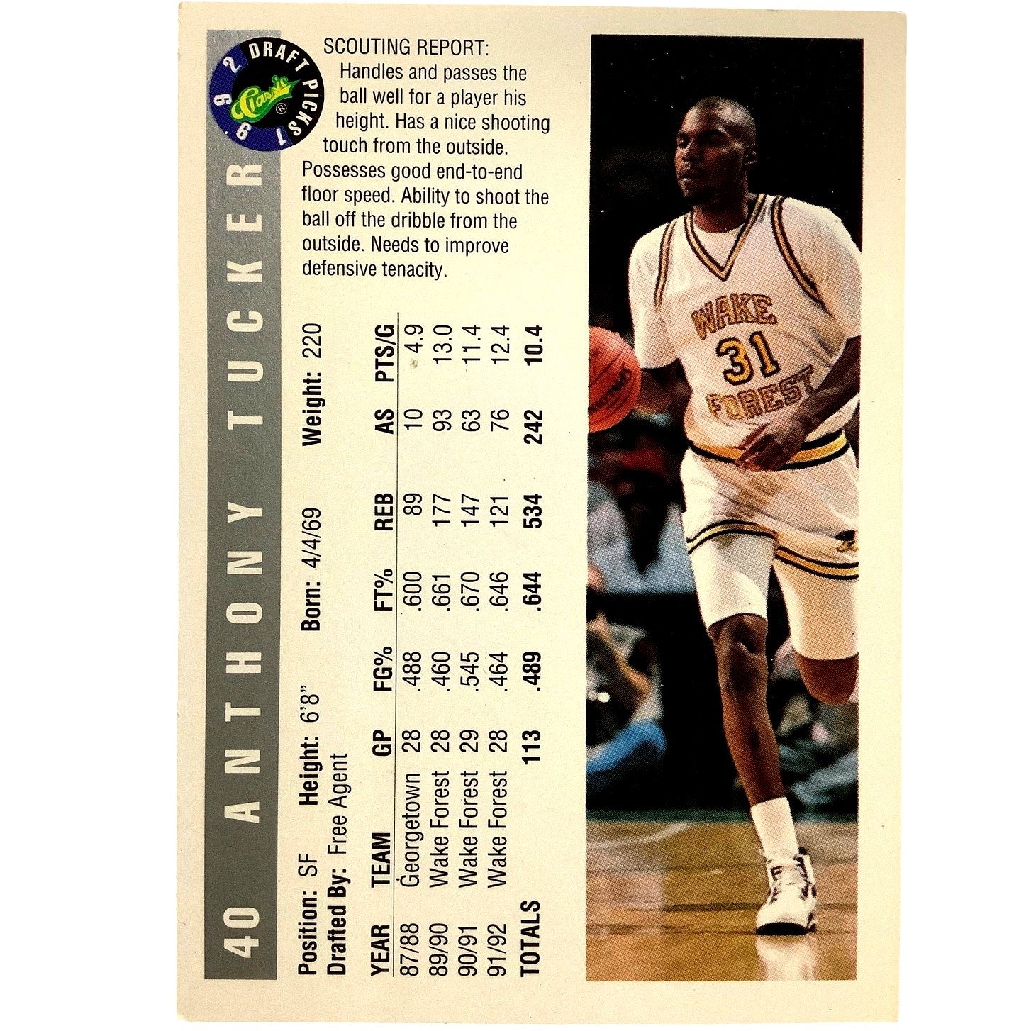 Anthony Tucker, Wake Forest (F), Classics 1992 Draft Picks Card 40, EXC