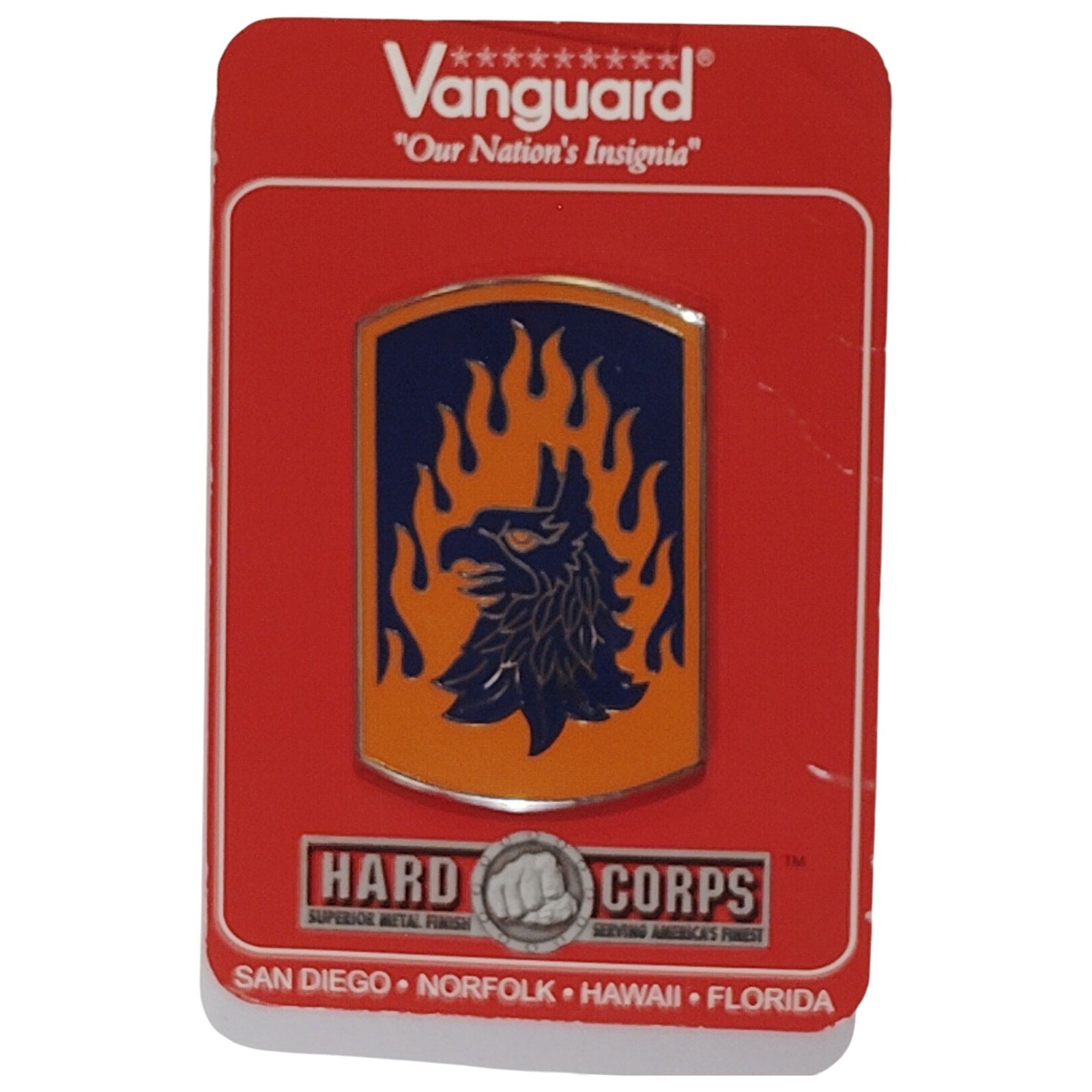 Official U.S. Army Combat Service Identification Badge (CSIB) for the 12th Aviation Brigade. Features the brigade’s winged sword insignia in full-color enamel on a silver-tone metal base. Measures 1-1/2 inches wide by 2 inches high. Authorized for wear on the new blue Army Service Uniform (ASU), Class A, and Class B uniforms. Manufactured by Vanguard Industries to meet military specifications. Individually packaged. Made in the USA.
