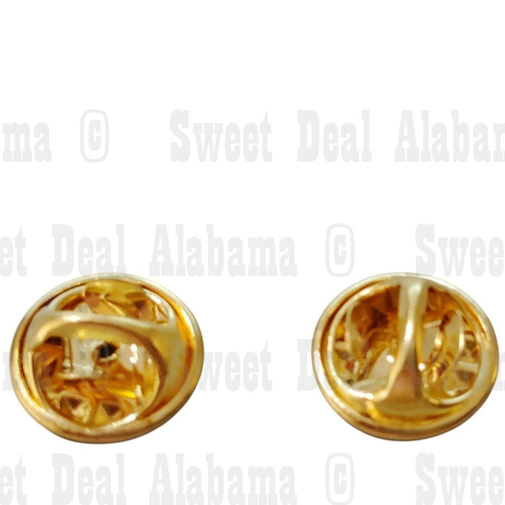 Includes butterfly clutchback(s) for secure fastening. The butterfly clutch is a small, metal clasp that grips the pin’s post, ensuring it stays in place on hats, jackets, or bags. This design allows for easy attachment and removal while keeping the pin firmly secured.