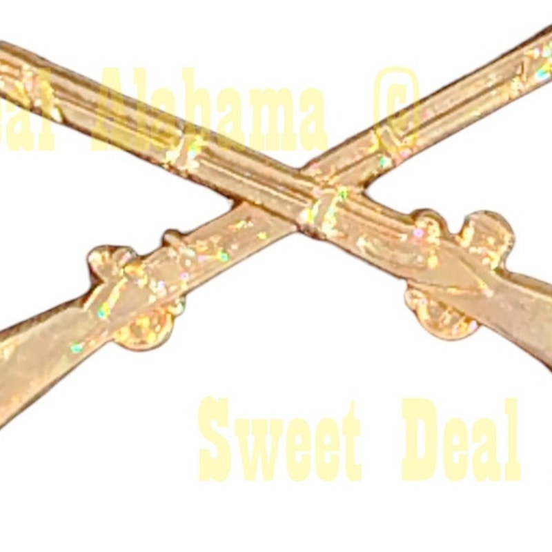 The Army Infantry Crossed Rifles Pin is a symbol of the U.S. Army Infantry branch, representing combat readiness and expertise in ground warfare. The design features two gold rifles crossed diagonally, signifying the tradition and strength of infantry soldiers.