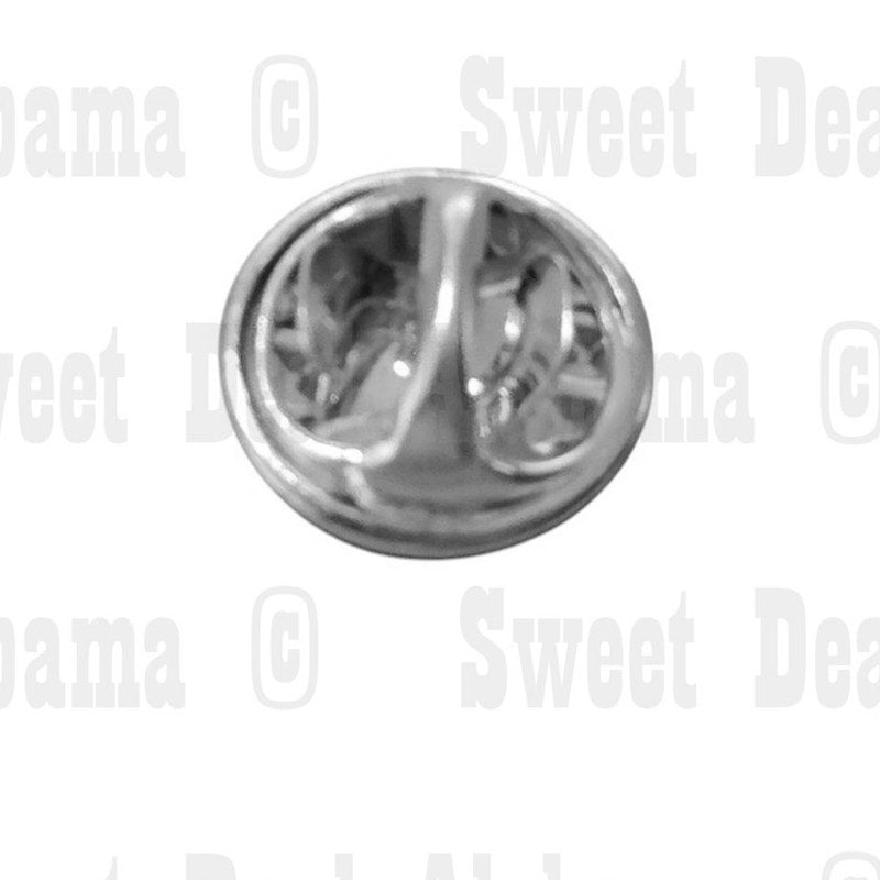 Includes butterfly clutchback(s) for secure fastening. The butterfly clutch is a small, metal clasp that grips the pin’s post, ensuring it stays in place on hats, jackets, or bags. This design allows for easy attachment and removal while keeping the pin firmly secured.