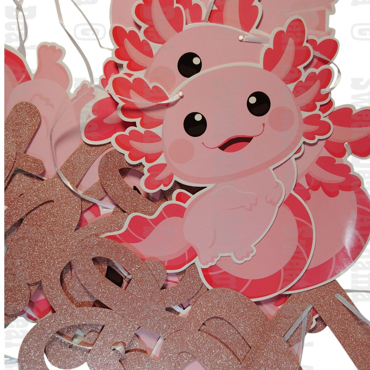 Crafted from durable cardstock with vibrant cartoon-style prints, these garlands are ideal for hanging on walls, tables, or backdrops. A fun and festive addition to any axolotl lover’s birthday bash!