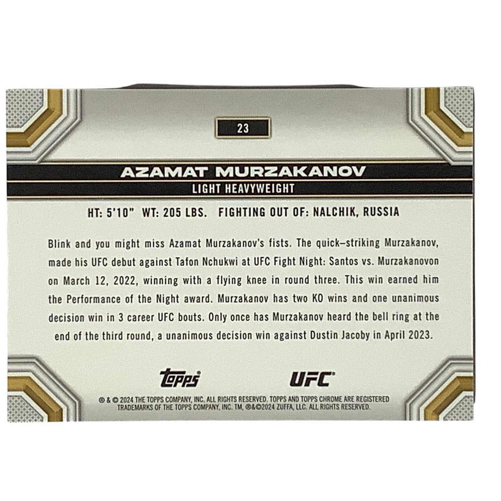 Azamat Murzakanov, Light Heavyweight, UFC Card 23, 2024 Topps Chrome UFC, NM+