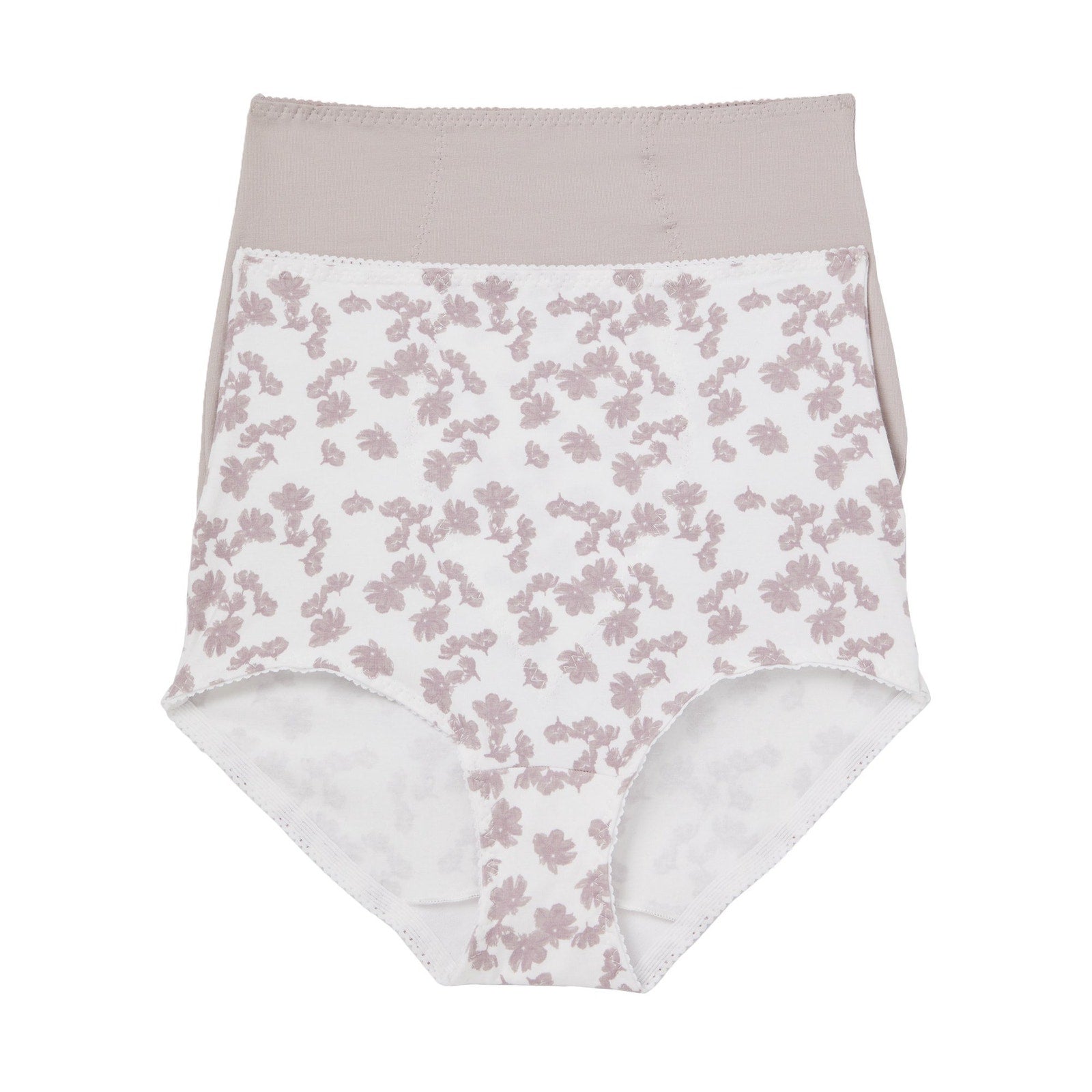 Bali Women’s Light Control Stretch Cotton Brief Panty (Style X037), 2‑pack in White Floral/Gloss, size 2X. These high‑rise briefs offer gentle shaping with light control, combining breathable cotton comfort with a touch of stretch for a smooth fit. The White Floral print features soft lavender flowers over a white base, paired with a solid Gloss beige tone for versatile wear. Designed for full coverage and everyday comfort, this set is ideal for women seeking a flattering silhouette without sacrificing softness.