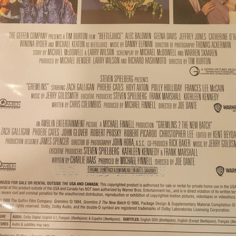 - Titles Included: Beetlejuice (1988), Gremlins (1984), Gremlins 2: The New Batch (1990)