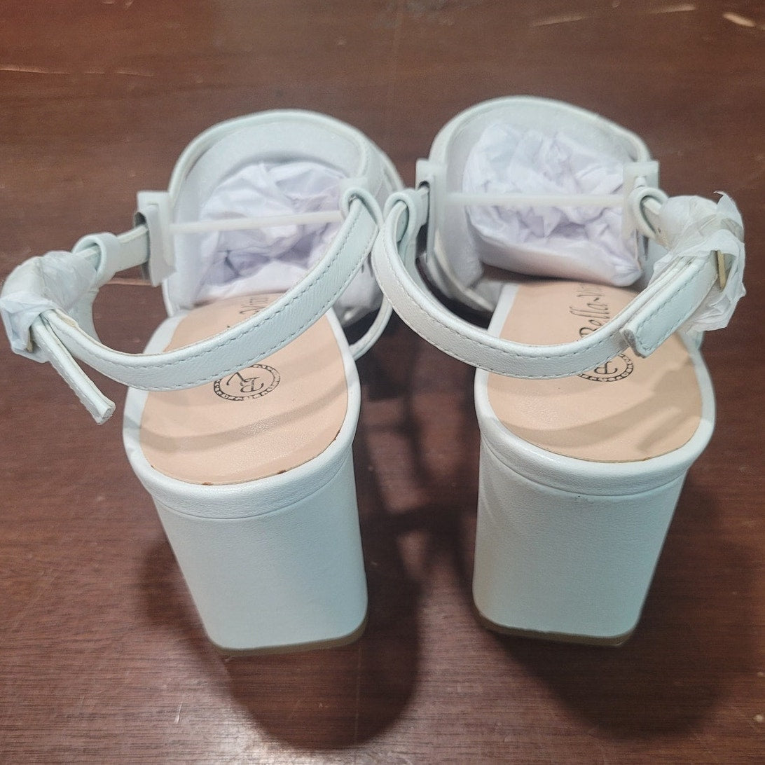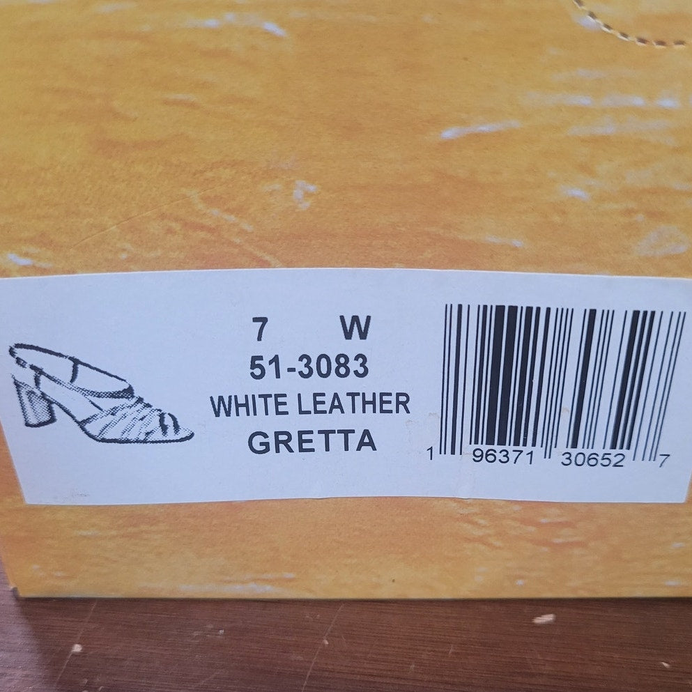 Bella Vita Gretta Heeled Sandal White Leather, 7 Wide, Strappy Buckle Dress Heel
