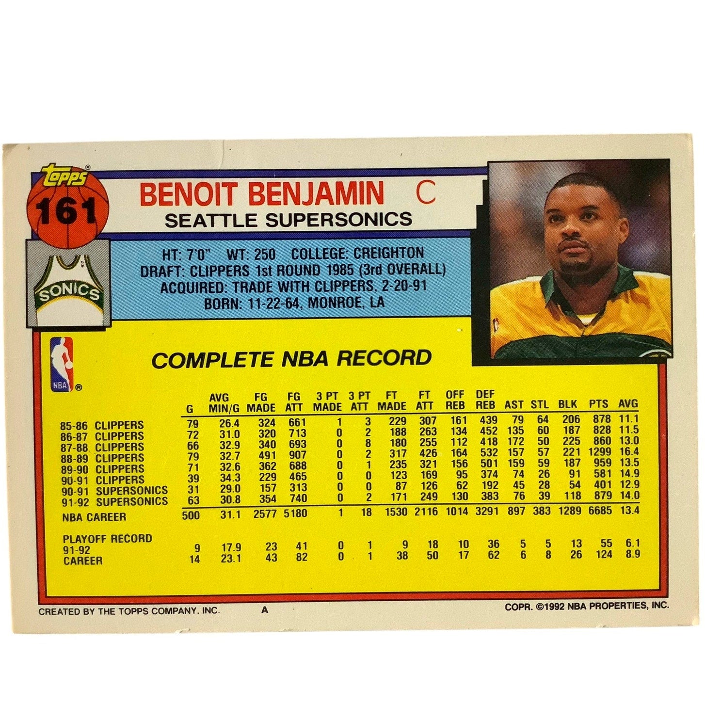Benoit Benjamin, Seattle Supersonics, 1992 Topps Collector's Card 161, EXC