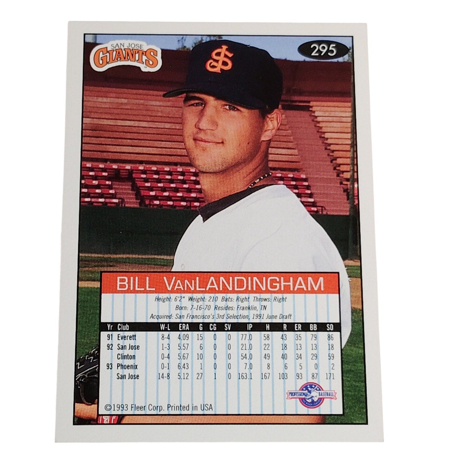 Bill VanLandingham, San Jose Giants, #295, 93-94 Fleer Excel Minor Leagues
