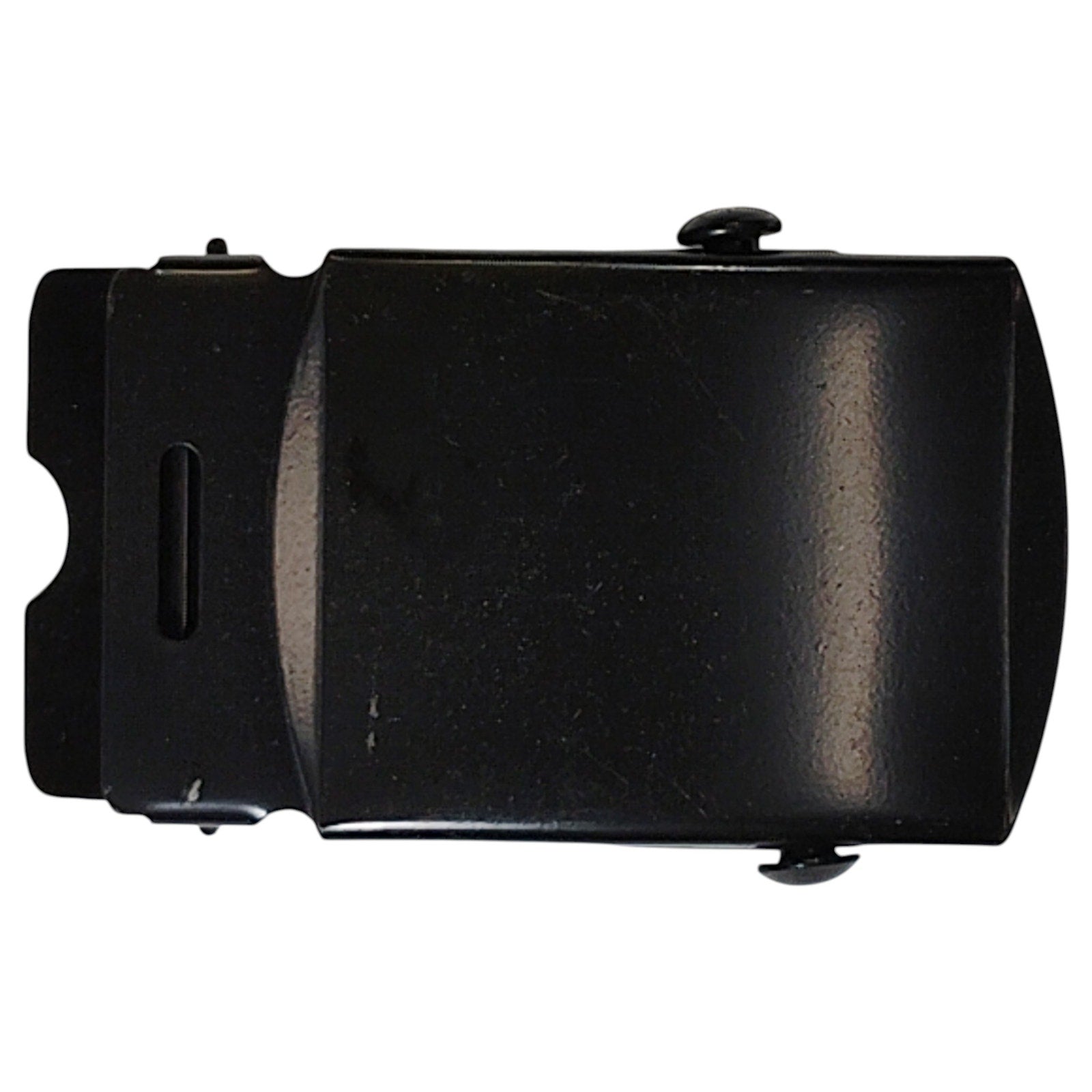 Brand new black metal belt buckle designed for tactical and utility applications. Measures 1-5/16" wide and fits standard 1¼" web belts. Constructed from coated steel or alloy with a matte black finish, offering durability and corrosion resistance. Features a secure slot and dual rivet anchors for reliable fastening. Ideal for military-style belts, outdoor gear, or custom webbing setups. Unused and in mint condition.