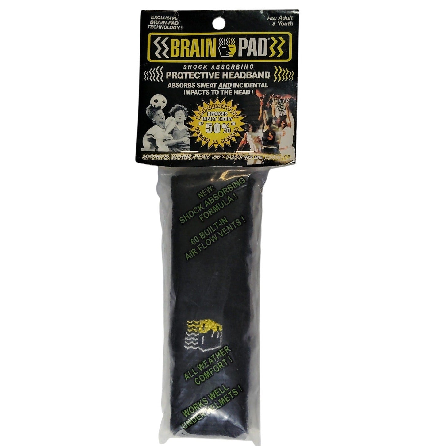Brain Pad Black Sweatband Unisex Adult Football Soccer Rugby