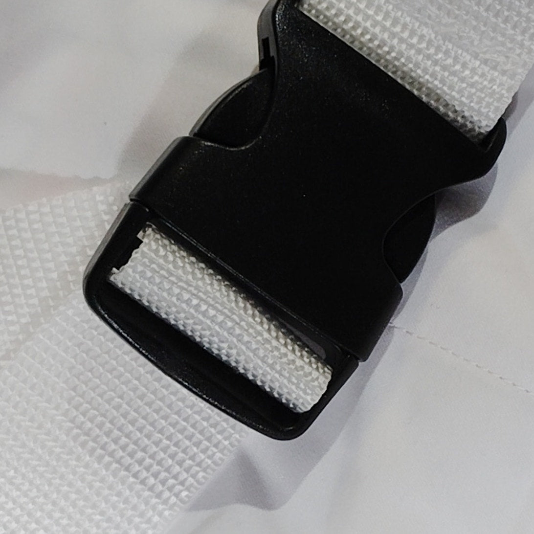 - Material: Polyester with elastic loops and plastic buckle