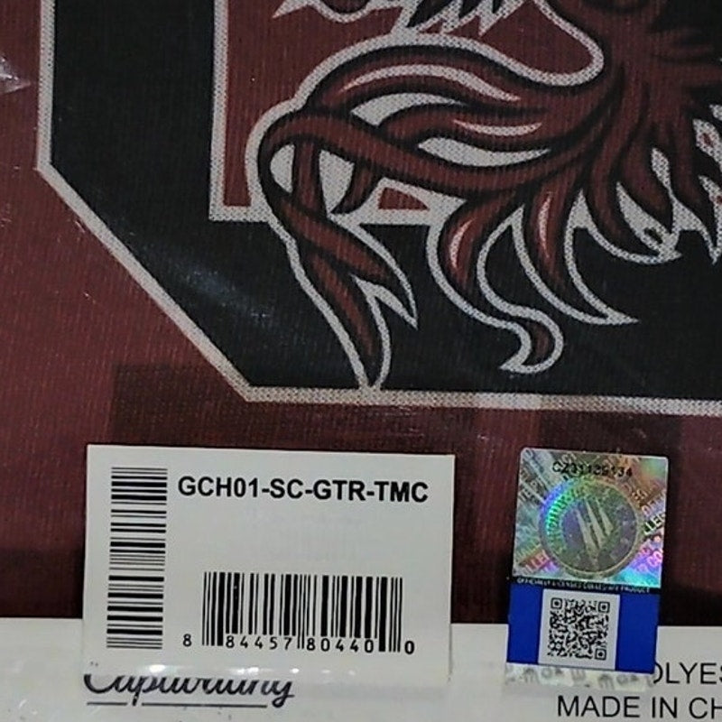 Officially licensed South Carolina Gamecocks neck gaiter by Captivating. Adult-sized face cover in team garnet and black, featuring bold Gamecocks graphics. Lightweight stretch fabric offers breathable comfort for game day, travel, or everyday wear. UPC 884457804400. A spirited accessory for fans, students, and alumni.